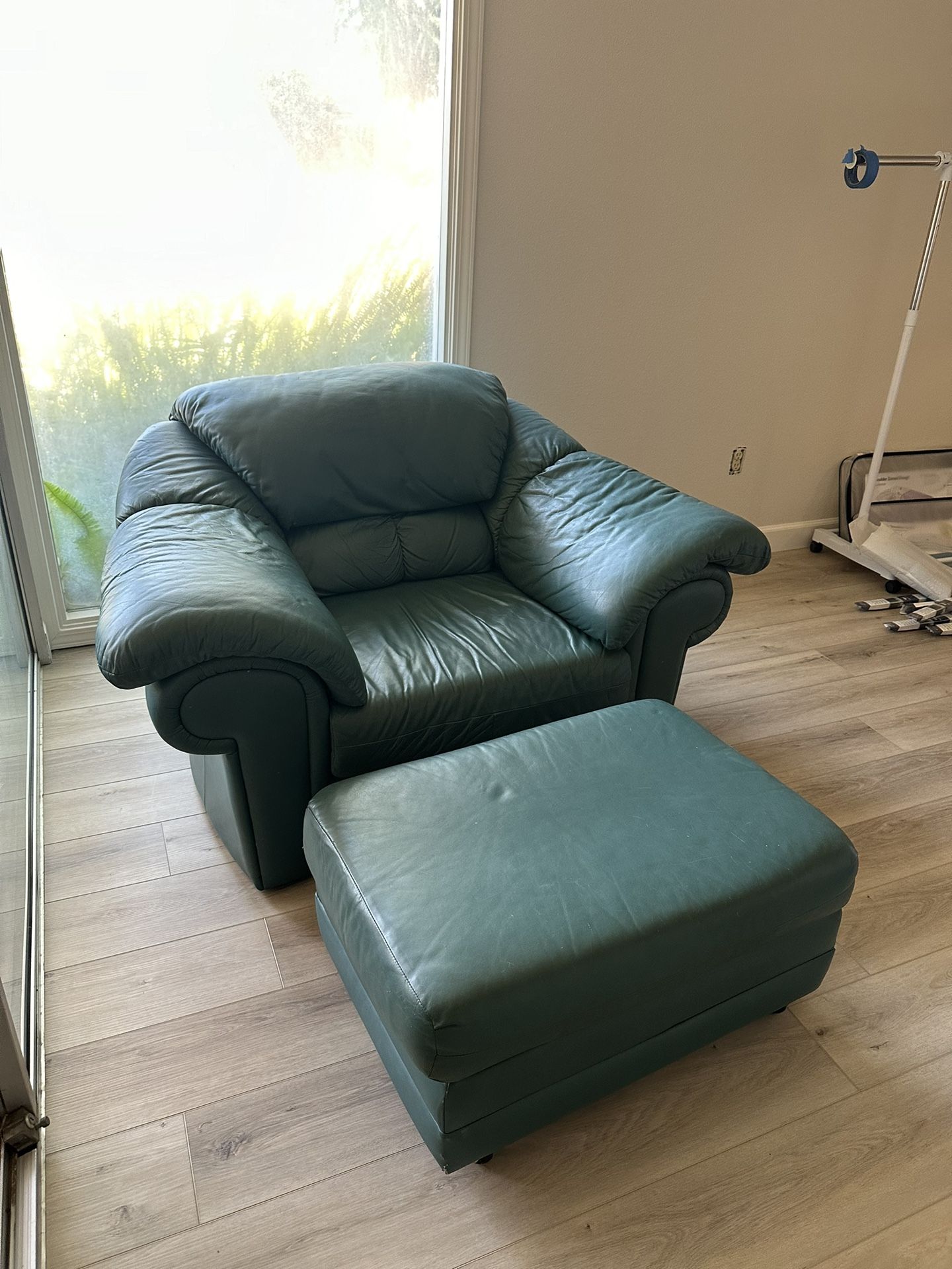 Green Logan Chair & Ottoman - Leathercraft Genuine Leather