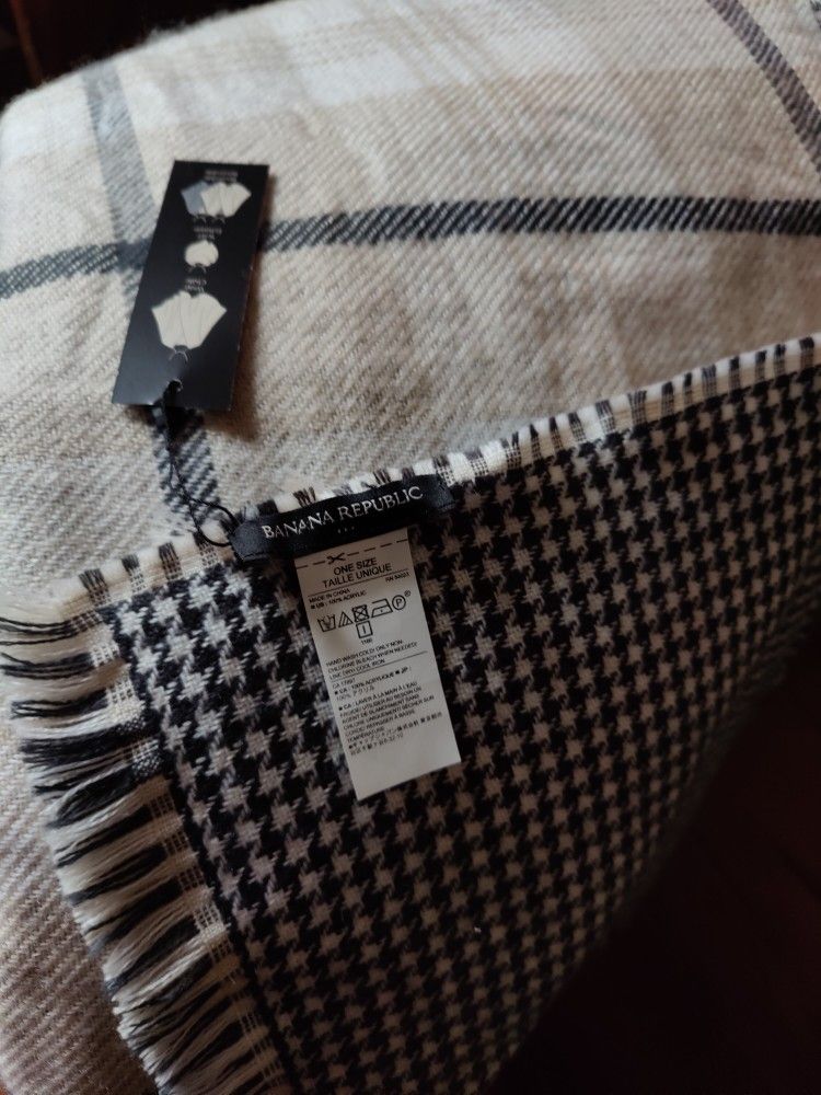 Banana Republic reversible poncho camel plaid on one side houndstooth on the other. Smoke free home.