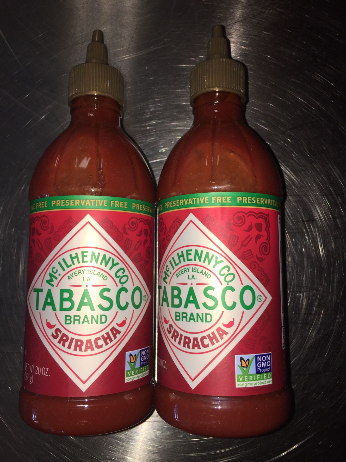 Two bottles Tabasco Sriracha hot sauce … NEW