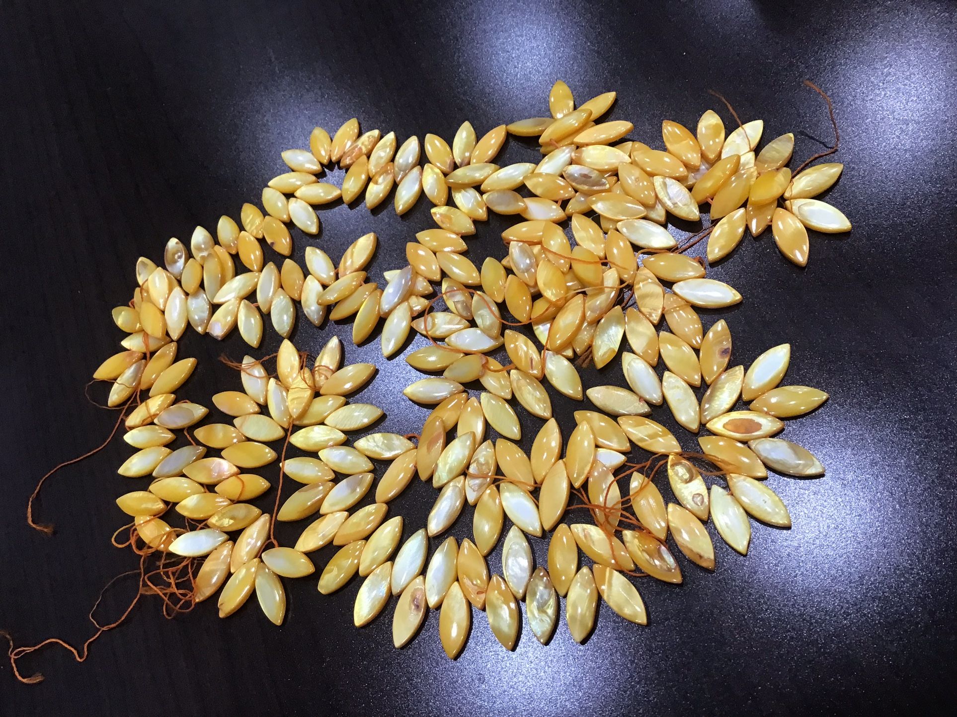New marquise shaped mother of Pearl dyed yellow beads