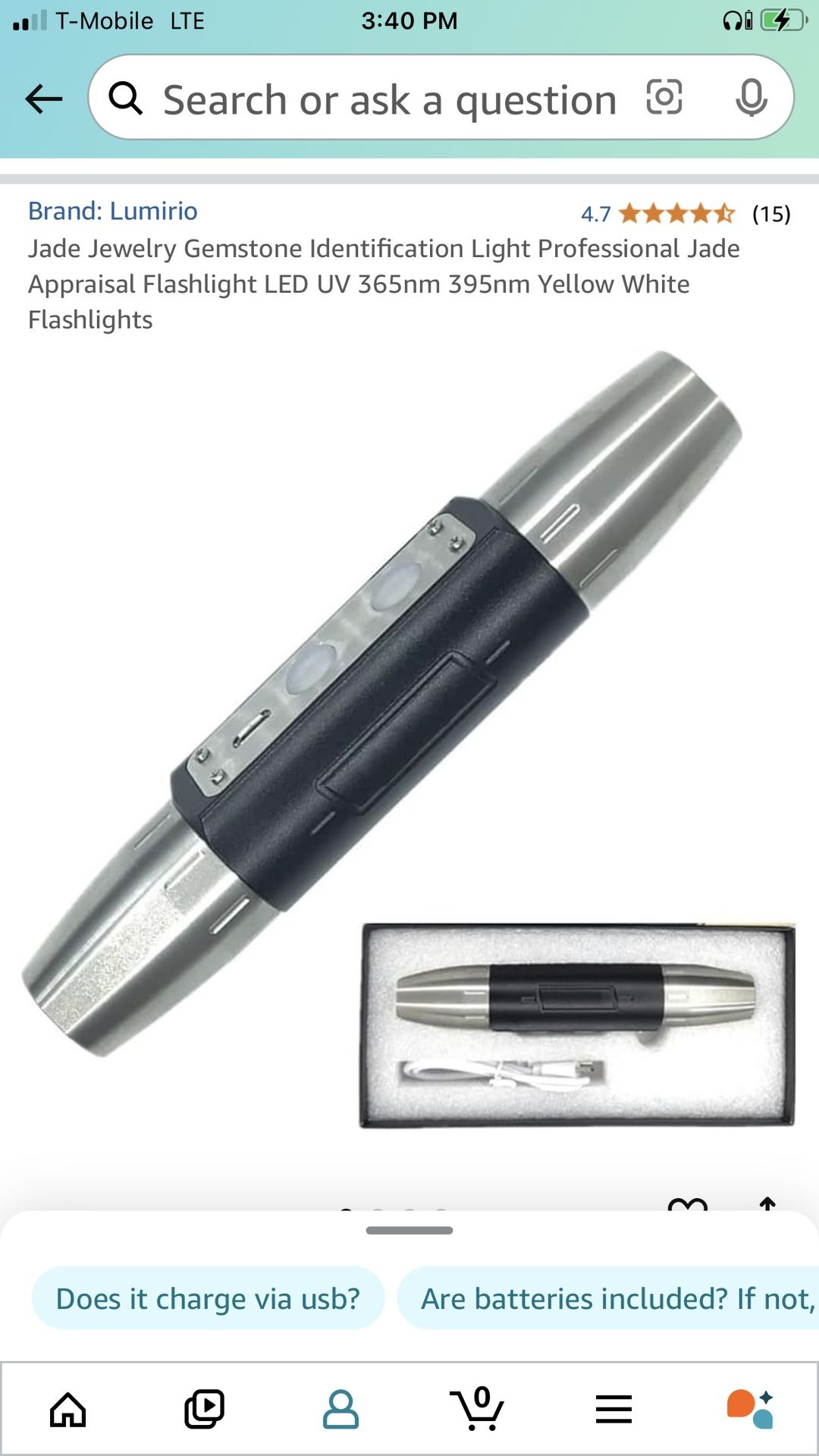 USB Rechargeable. White and yellow light to assist with jewelry appraisal and identification. Paid $21 on Amazon and used once.