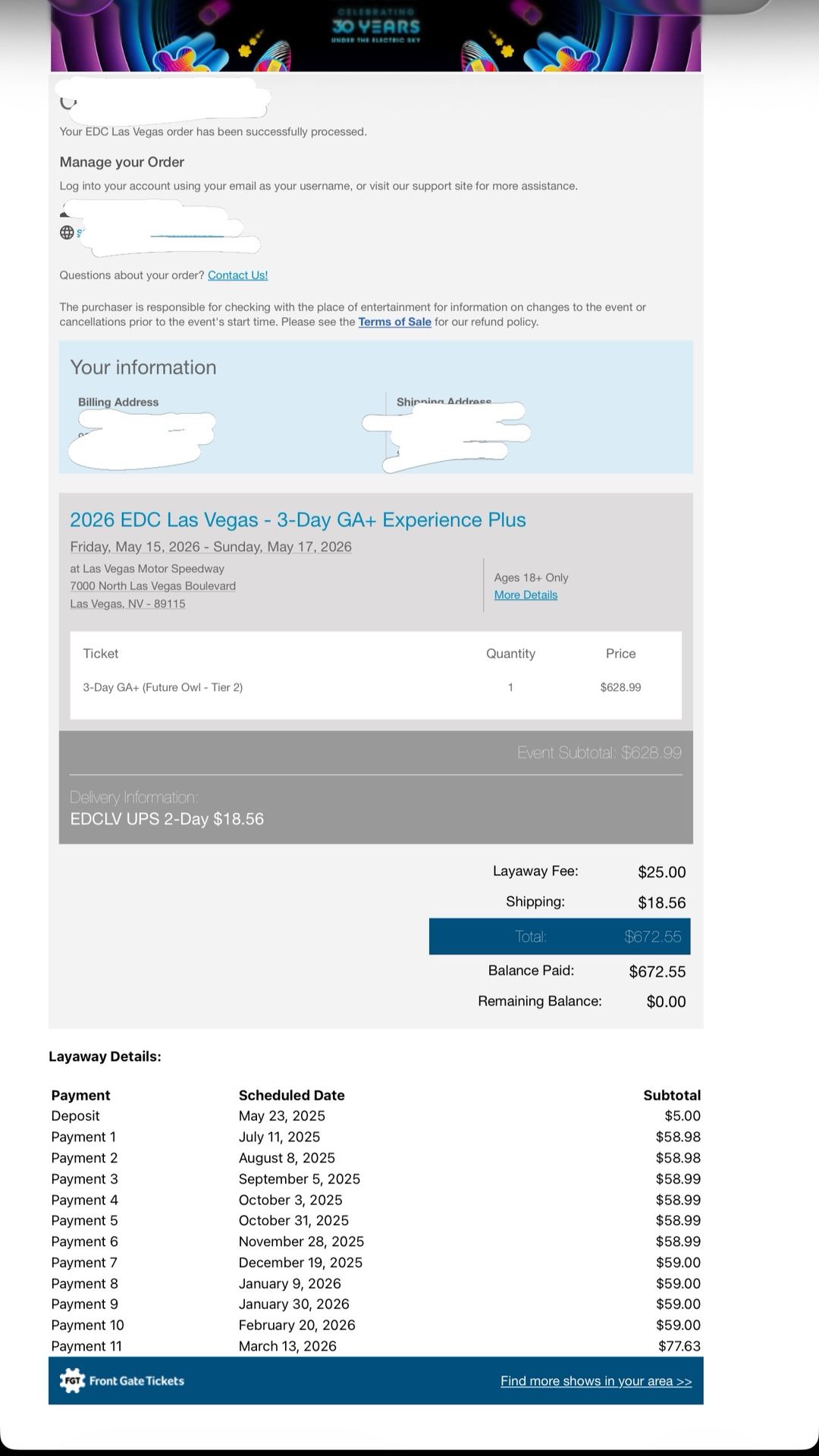 I’m selling my EDC GA+ ticket. I am no longer able to attend due to unforeseen circumstances. I’m selling it at face value or best offer. If you are interested I will hold it until the wristband comes in and will be available as soon as the box is mailed to me.