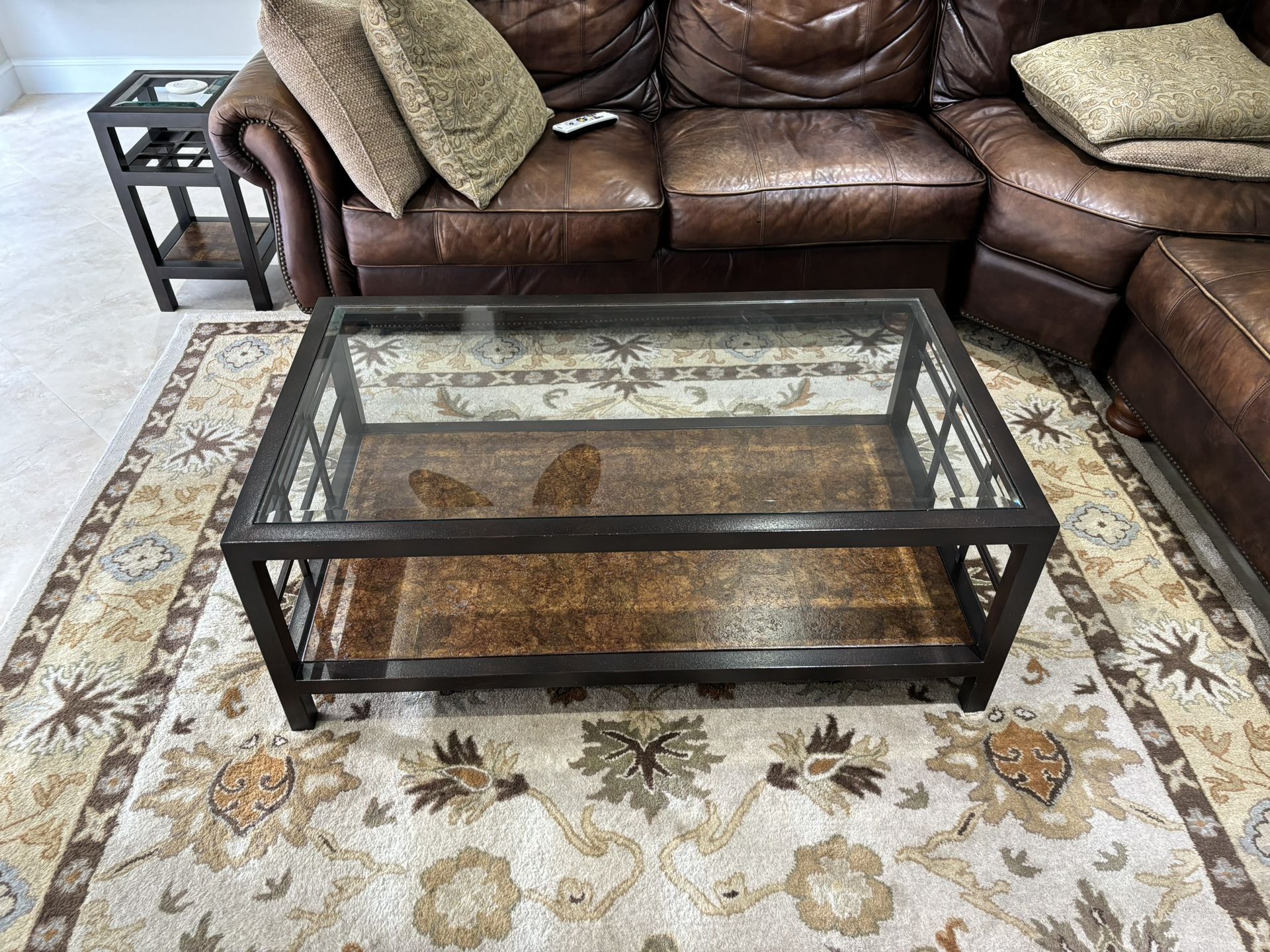 Accent table 22h x12wx 12d Beveled glass insert in top and glass shelf Cork board bottom shelf $31 Sofa Table 31h x 54w x 16d Beveled glass insert top and corkboard bottom Shelf $80 Cocktail Table 18 1/2 h x 48w x 27 1/16d $75