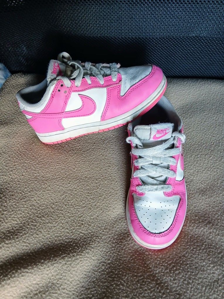 Kids Nike Dunks size 13c,will need new laces & white shoe polish on bottom outsole as seen in photos. But still a great pair.