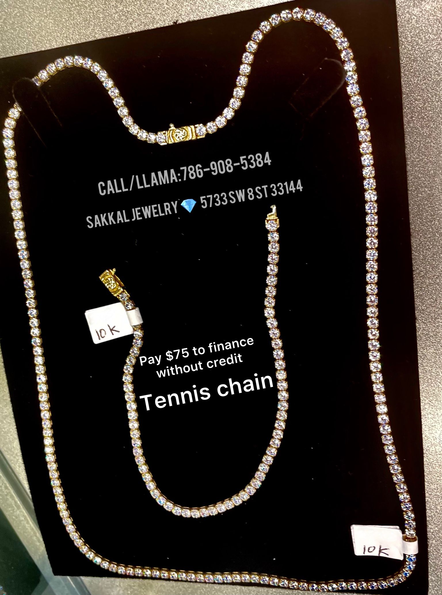 10K gold tennis chain with bracelet. We sell real 10 and 14K gold. Find us on google searching for Sakkal Jewelry.