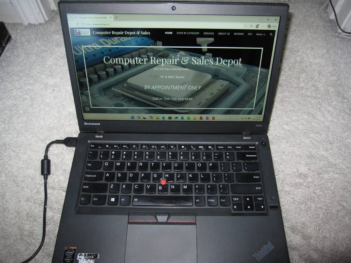 IBM / Lenovo Thinkpad T450s 14" laptop with built in web cam. Comes with a very fast Intel i7-5600u 5th generation processor running at 2.6Ghz, 12GB DDR3 memory, 512GB SSD hard drive. Comes fully cleaned and tested and loaded with Microsoft Windows 11 Professional. Comes with good battery and genuine Lenovo ac adapter / charger. Comes with 30 day warranty! Serial number is PC-04CBUK 15/04