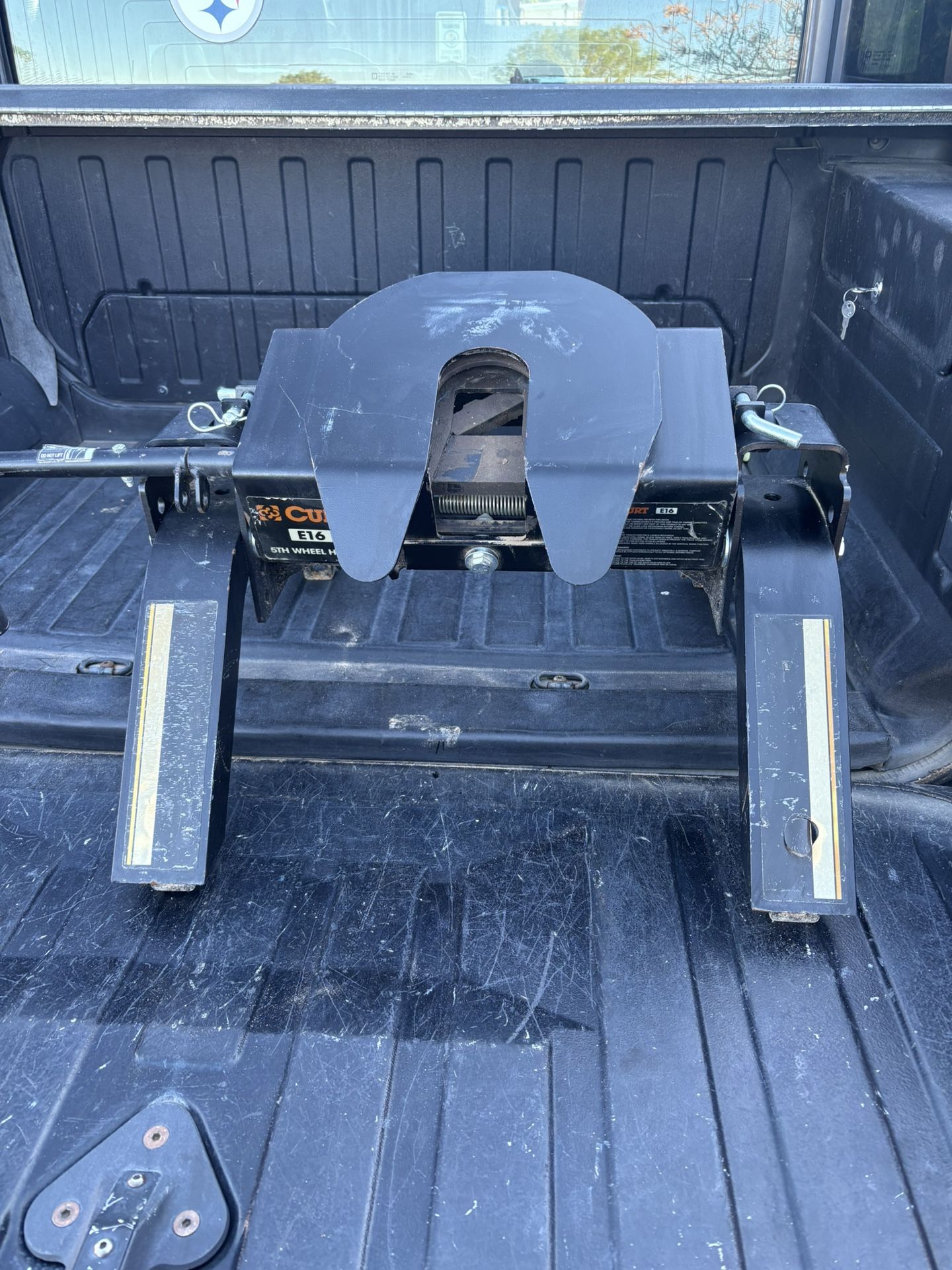 Nice fifth wheel hitch. CURt E16 16k hitch in excellent condition. Cheaper than new. These hitches run $369 and up. No rails and new ones don’t come with rails.