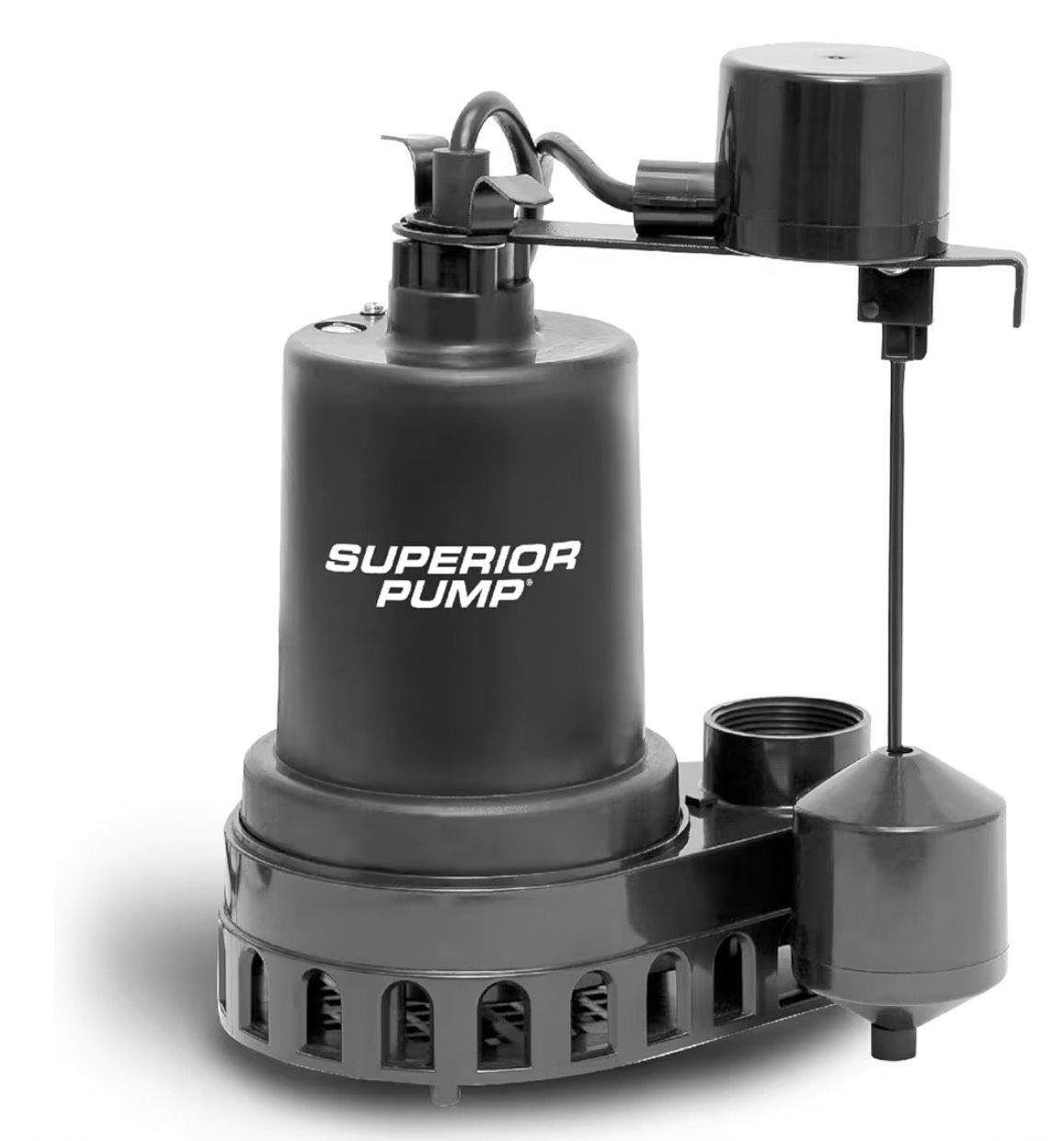 Superior Pump 92572 1/2 HP Thermoplastic Submersible Sump Pump with Vertical Float Switch