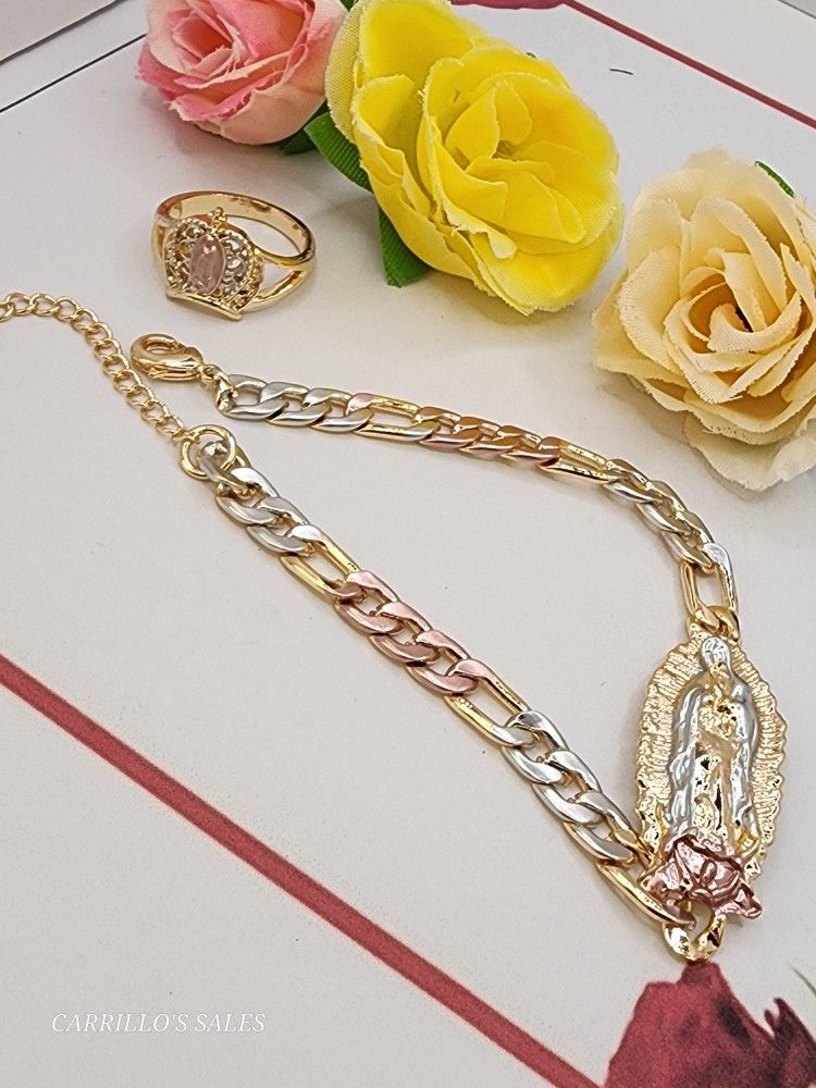 Virgin Mary 3-colors 18k Set Bracelet Ring #9