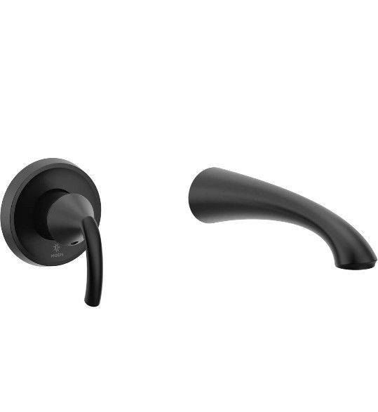 Moen Glyde Matte Black Single Handle Wall Mount Tub Filler High Flow Faucet with 10" Spout Reach, WT371BL Open box