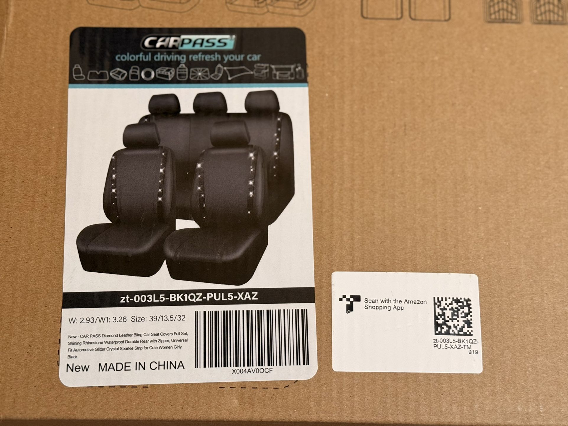Vendo set completo de fundas marca CARPASS. Son de cuero negro con detalles de diamantes brillantes. • Compatibilidad: Universal (Carros, Pickups y SUVs). • Material: Cuero sintético impermeable (fácil de limpiar). • Estado: Nuevo, nunca usado. ¡Protege tus asientos con mucho estilo! Precio negociable.