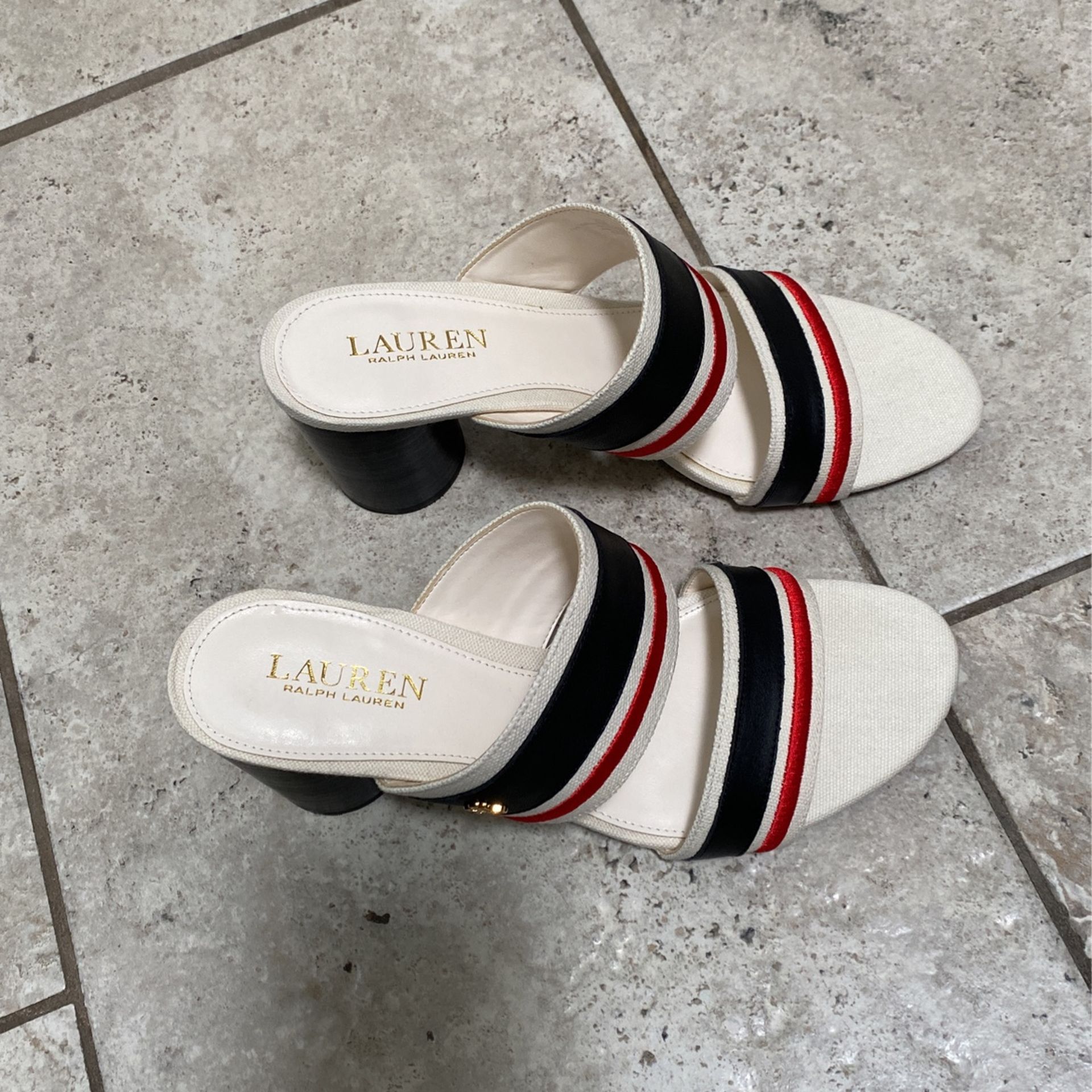 Ralph Lauren 2 inch heel tan blue or red brand new never worn