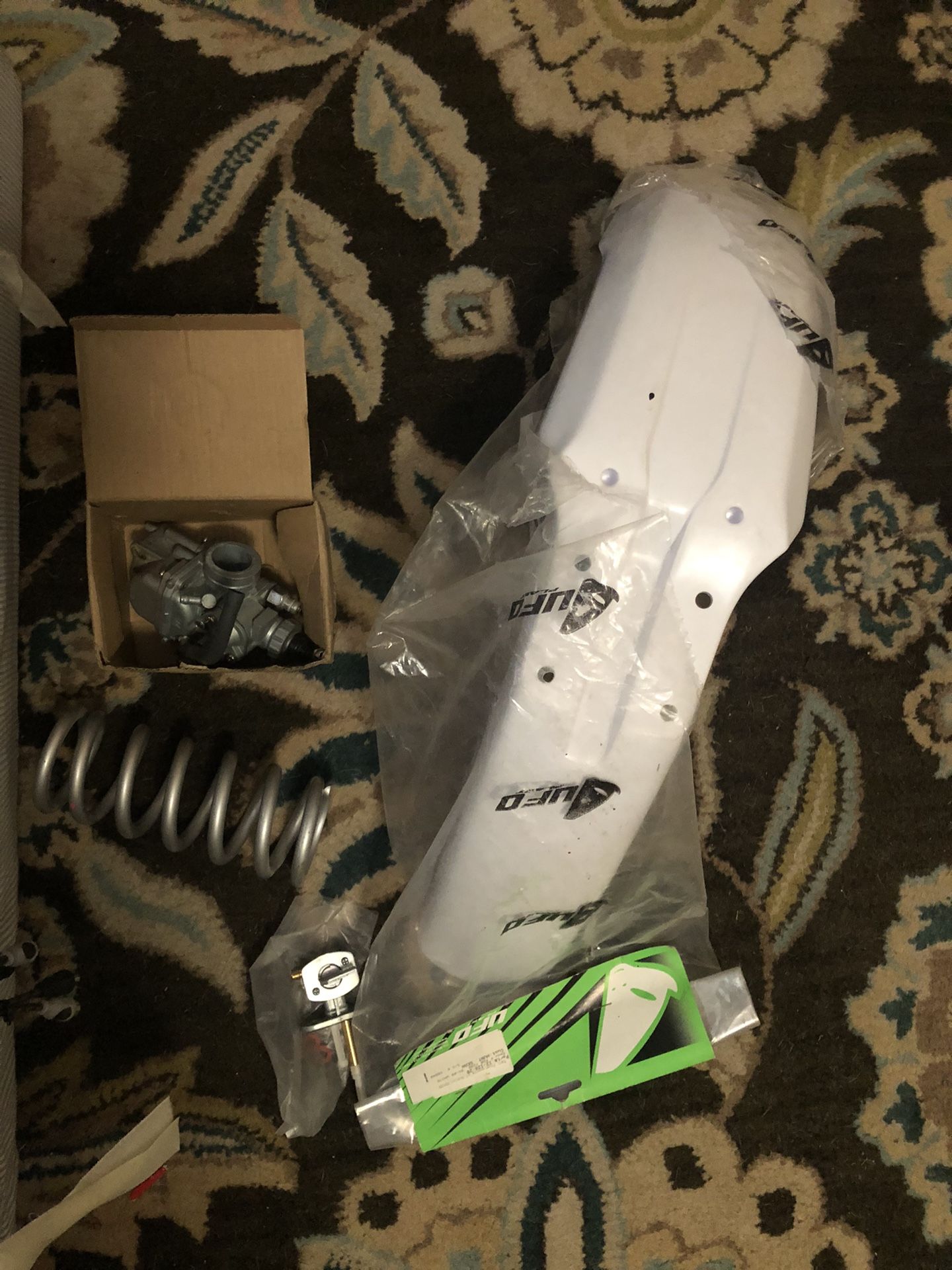 Yamaha TTR125 2002 parts Fuel tank petcock valve Carburetor (used) Rear shock spring heavy duty Plastic rear fender white