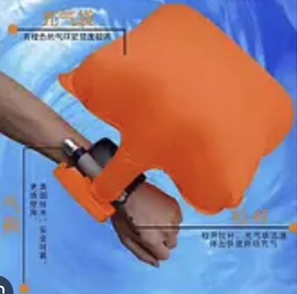 Emergency Flotation device. Life preserver. Easily activated. New in box. Strong canvas bag. Reusable, wrist worn like a watch until needed. Wear it all day. Boating,safety, all ages. Simple operation. Self inflating.