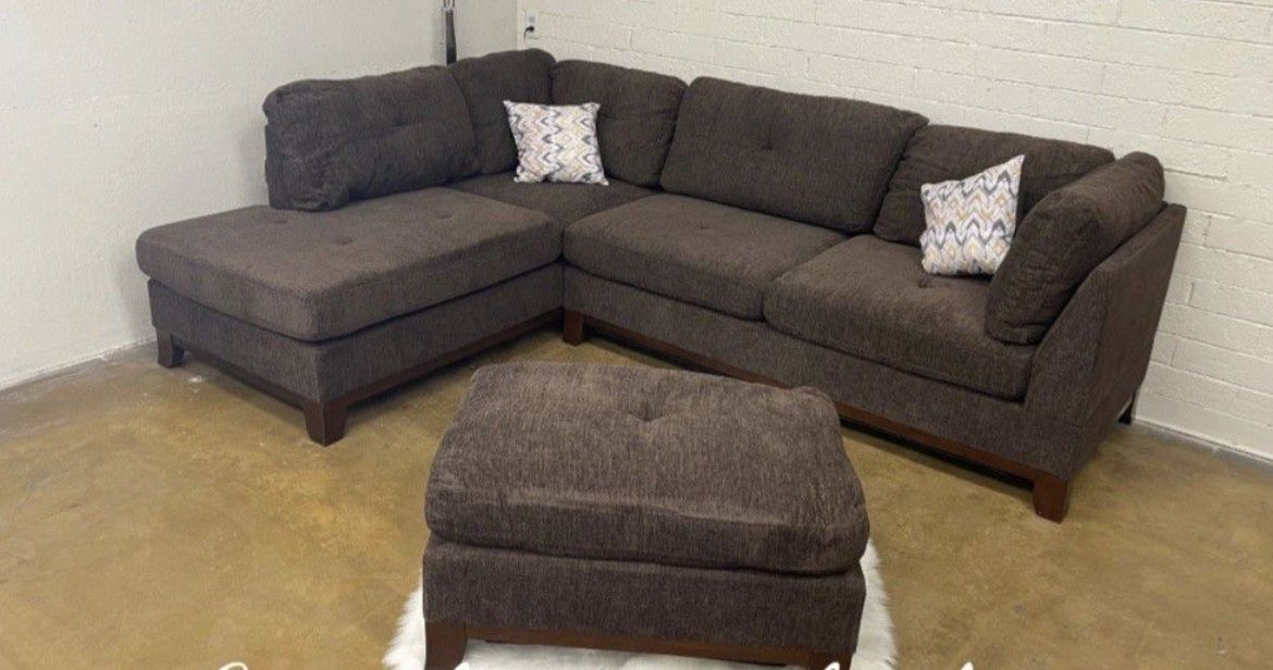 Chenille L Shape Sectional Sofa Couch With Ottoman (available For Same Day Pick Up)