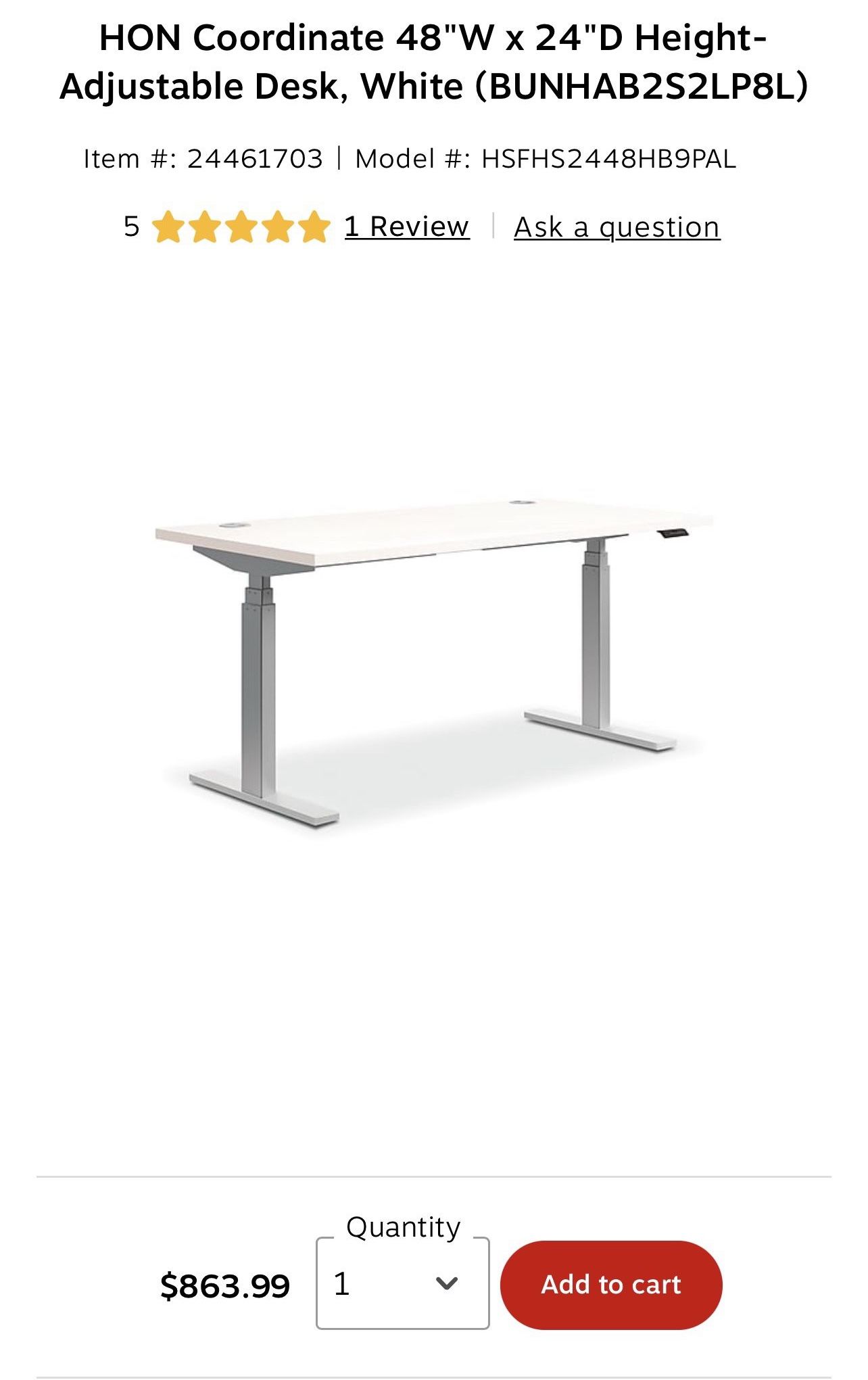 HON - Coordinate Adjustable Height Desk 48”W x 24”D