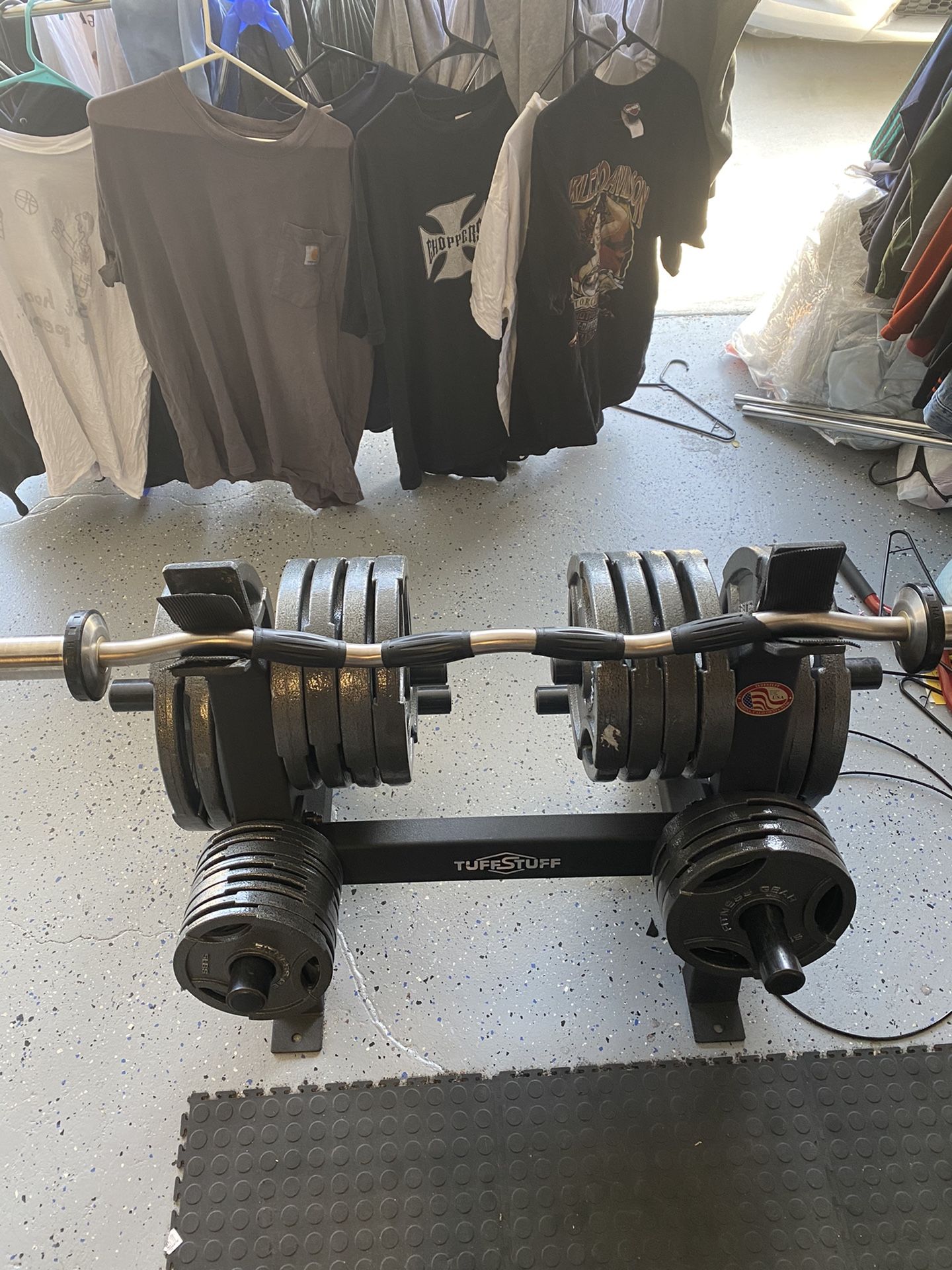 25lbs EZ curl bar included with weight rack and bar rack 4 45LBS plates 8 25 LBS plates 4 10LBS plates 8 5LBS plates FEEL FREE TO OFFER