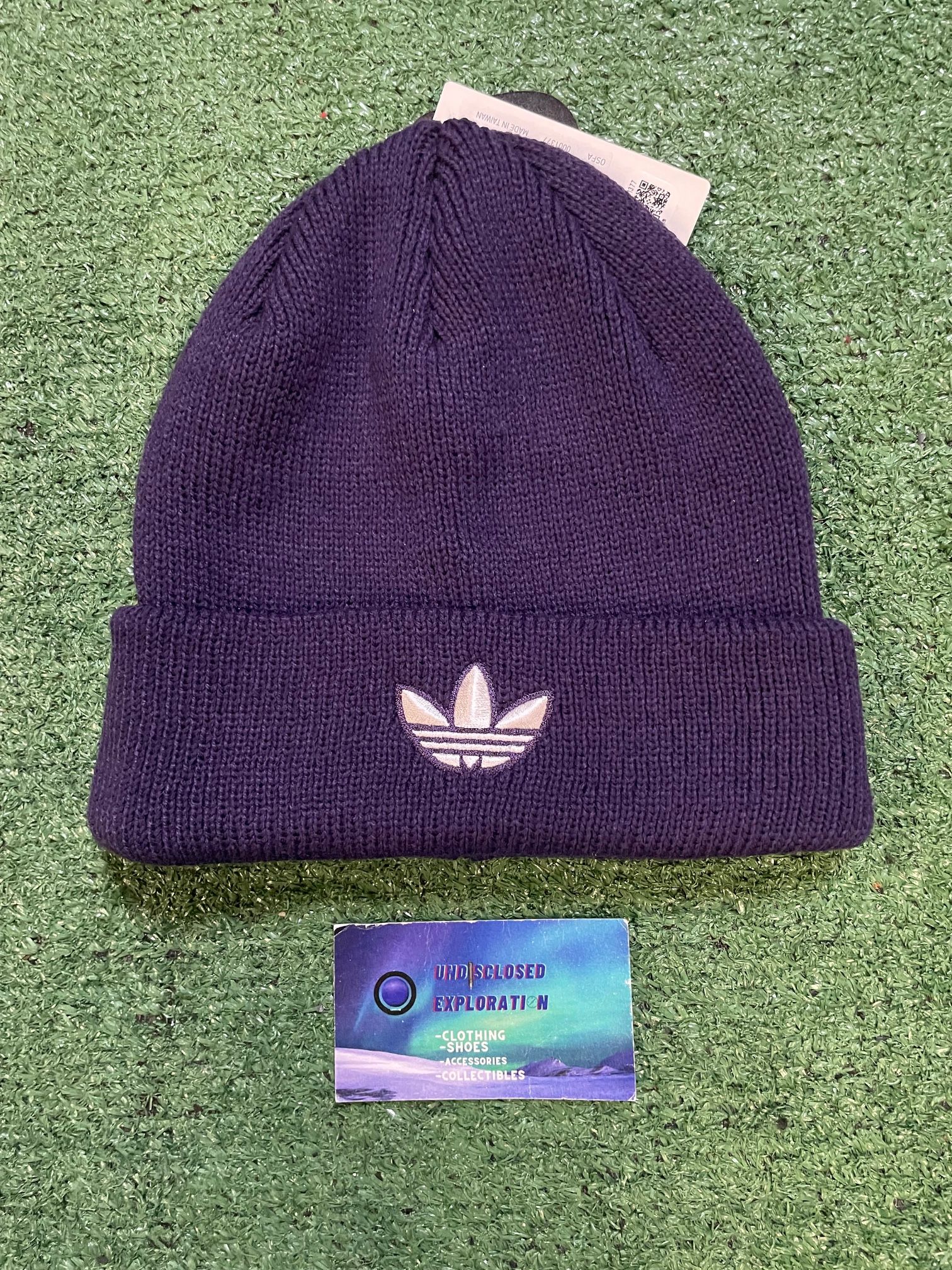 Adidas purple trefoil beanie