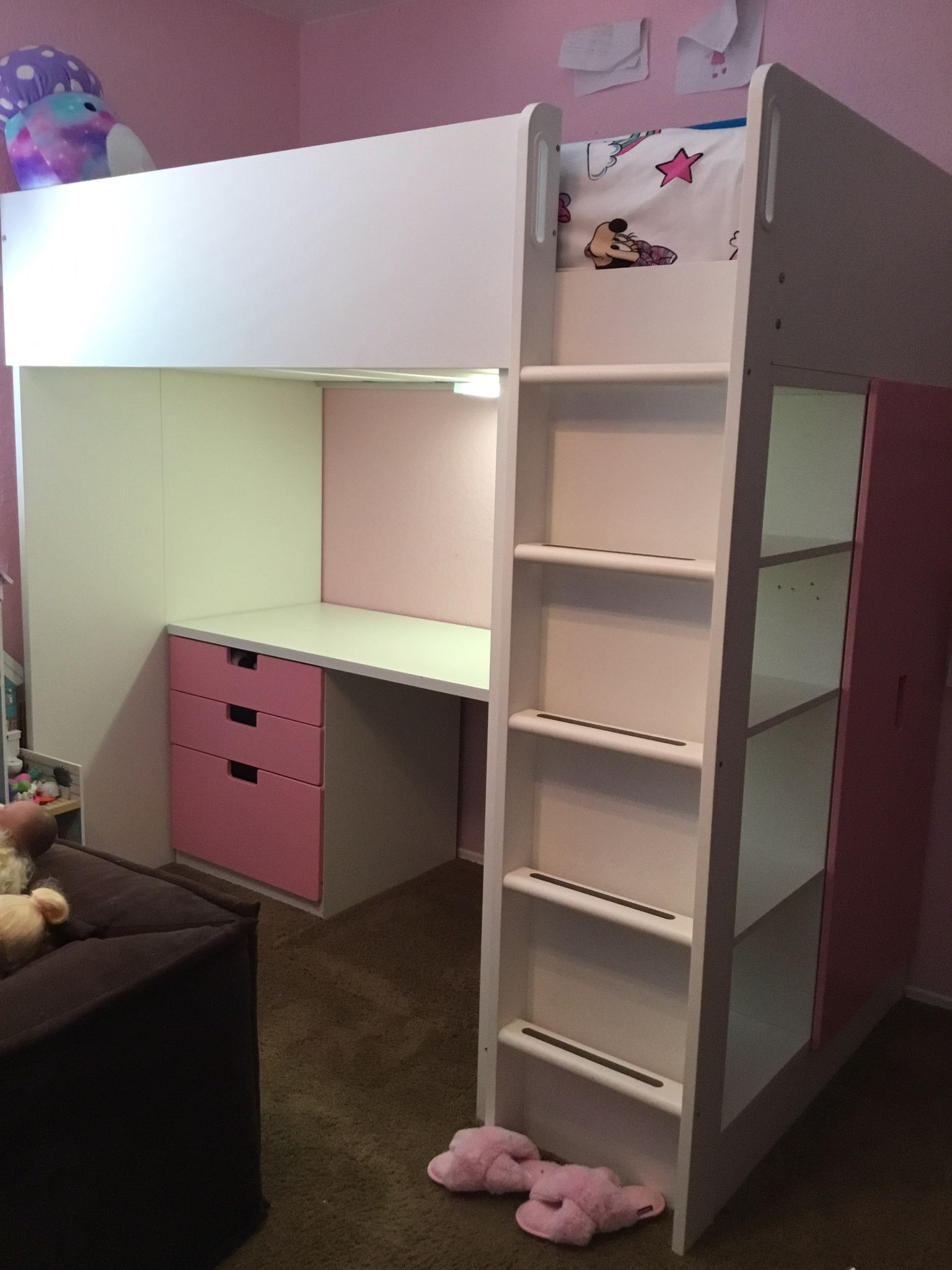 Girls Twin Pink IKEA Loft Bed With Desk And Closet