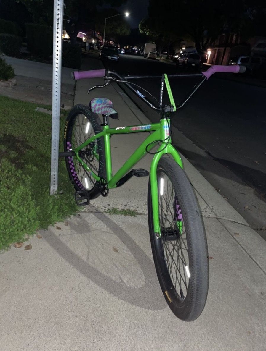 29 inch big flyer black seat se bikes pegs se bikes life stem purple purple odi grips brand new mt201s back hookworm super bigs no problems with it need gone NO TRADES !!!