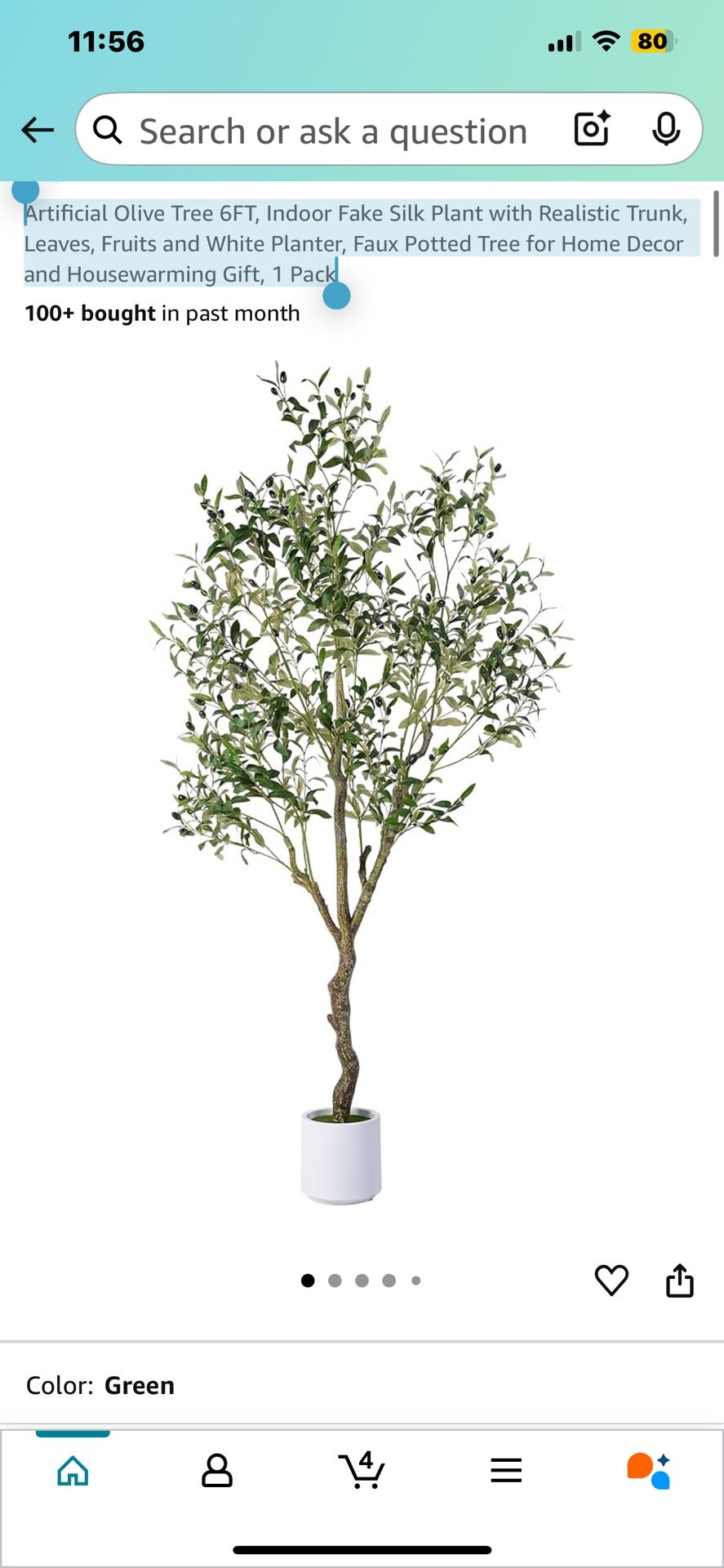 New open box(in the box) Artificial Olive Tree 6FT, Indoor Fake Silk Plant with Realistic Trunk, Leaves, Fruits and White Planter, Faux Potted Tree for Home Decor and Housewarming Gift, 1 Pack We can bring it to you for $10/$15 depending how far you are