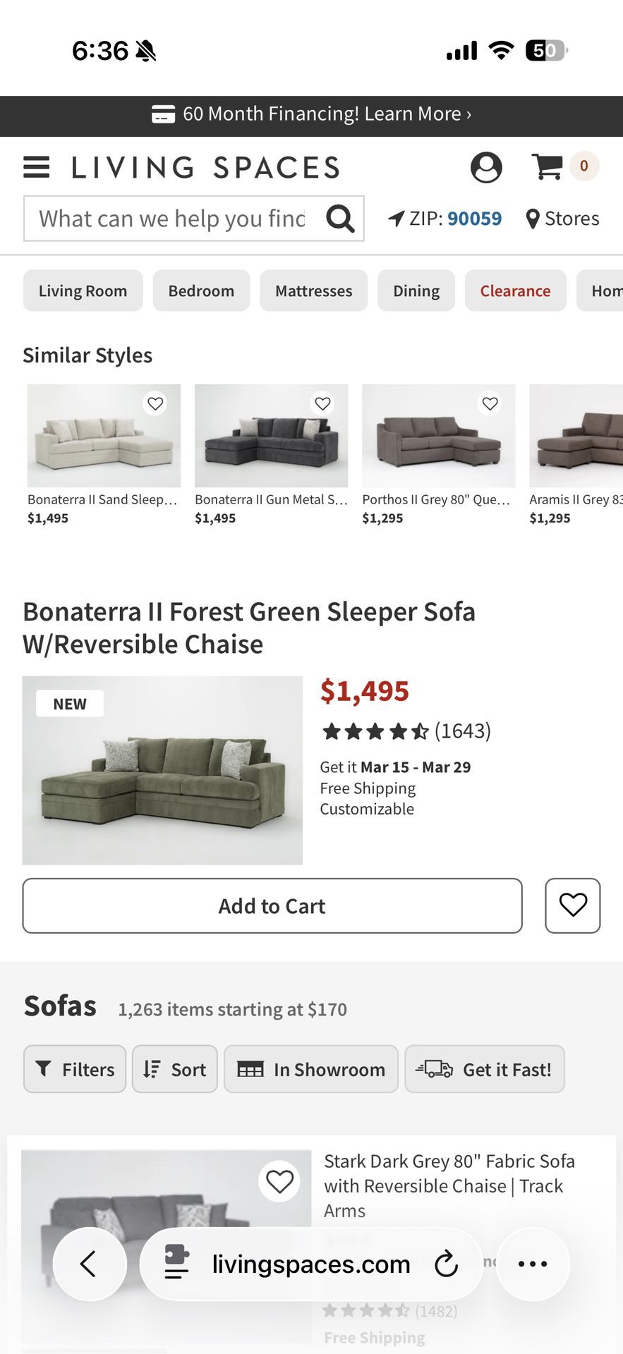 living spaces Reversable chaise Couch with pullout full mattress
