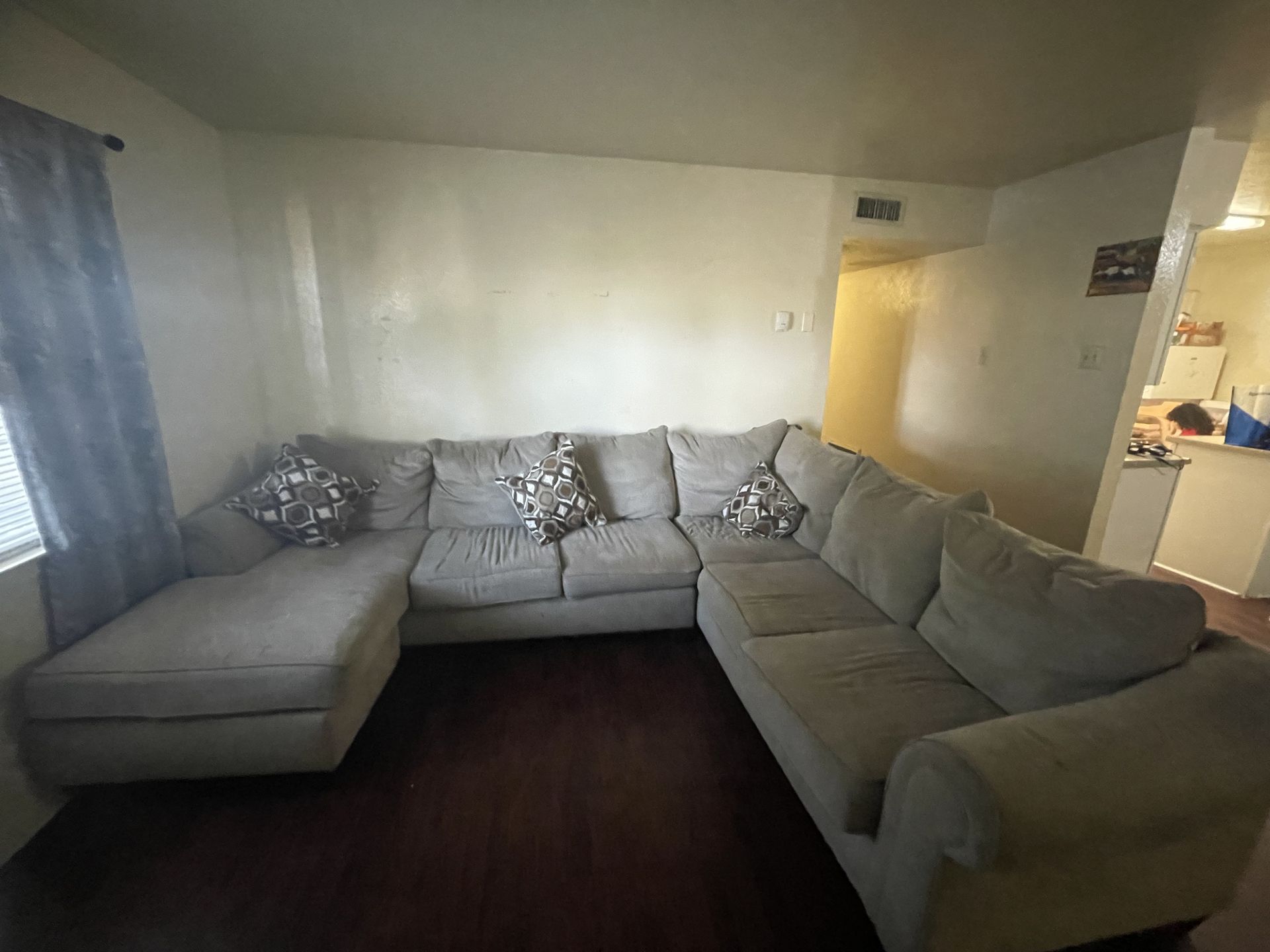 Its a 2 pieces and the couch covers are removable & washable. It does have scratches from my dog .