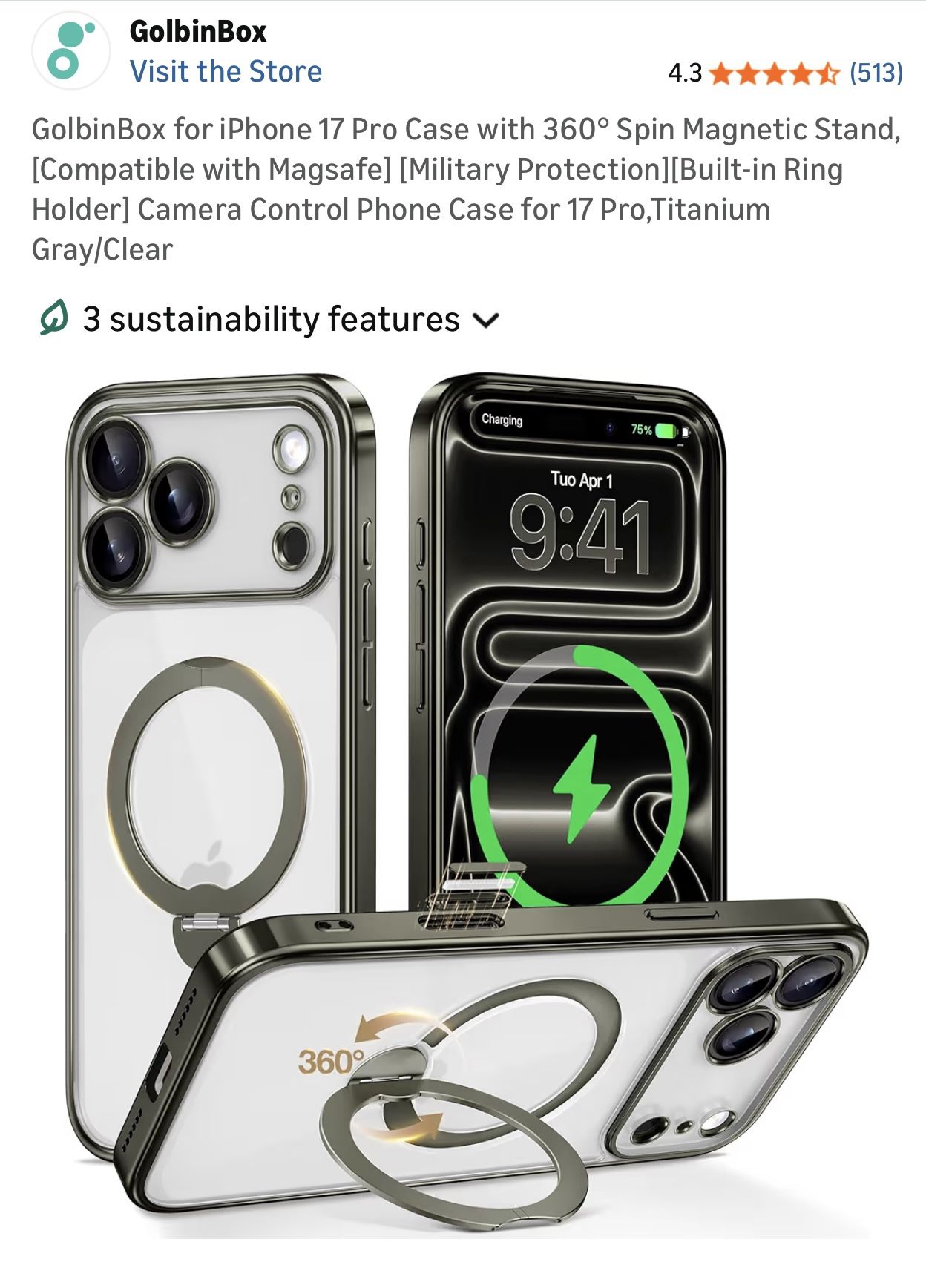 GolbinBox for iPhone 17 Pro Case with 360° Spin Magnetic Stand,[Compatible with Magsafe] [Military Protection][Built-in Ring Holder] Camera Control Phone Case for 17 Pro,Titanium Gray/Clear Wrong phone case and missed return window
