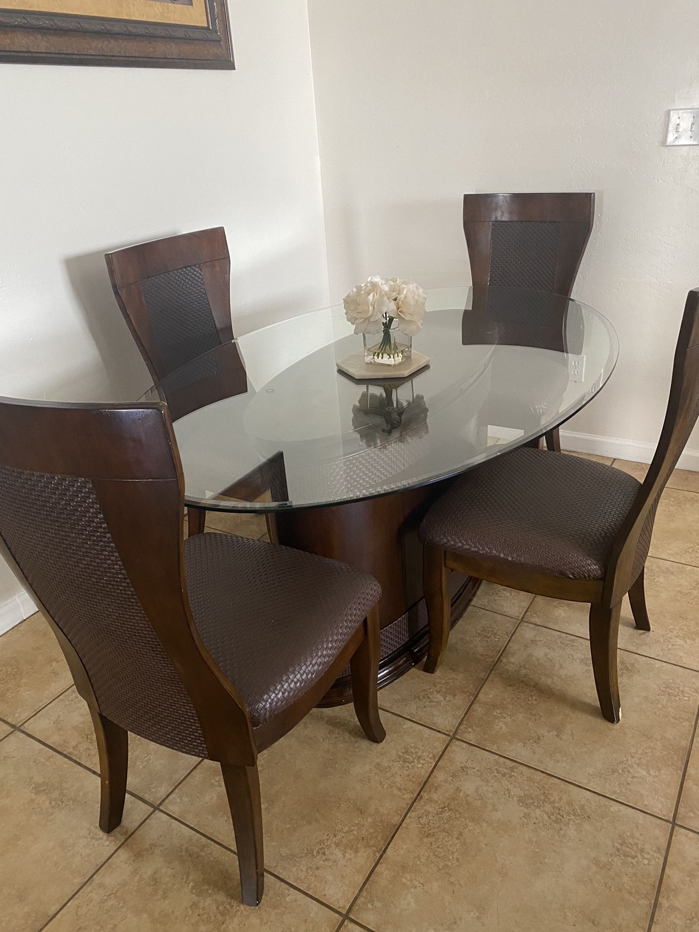 Glass on top Chairs made of leather