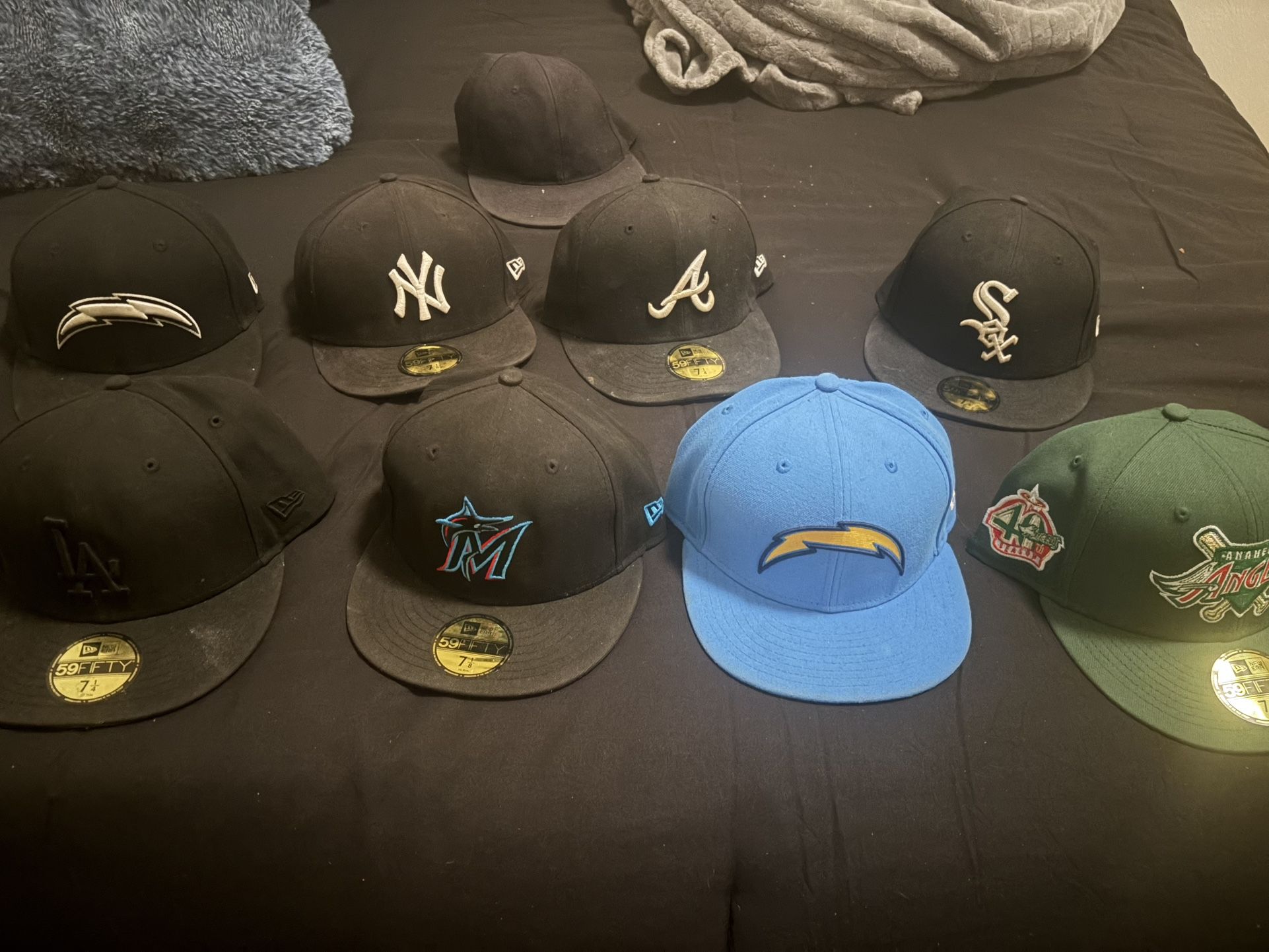 Set Of 9 Hats (Dodgers, Chargers, Yankees, Braves & More)