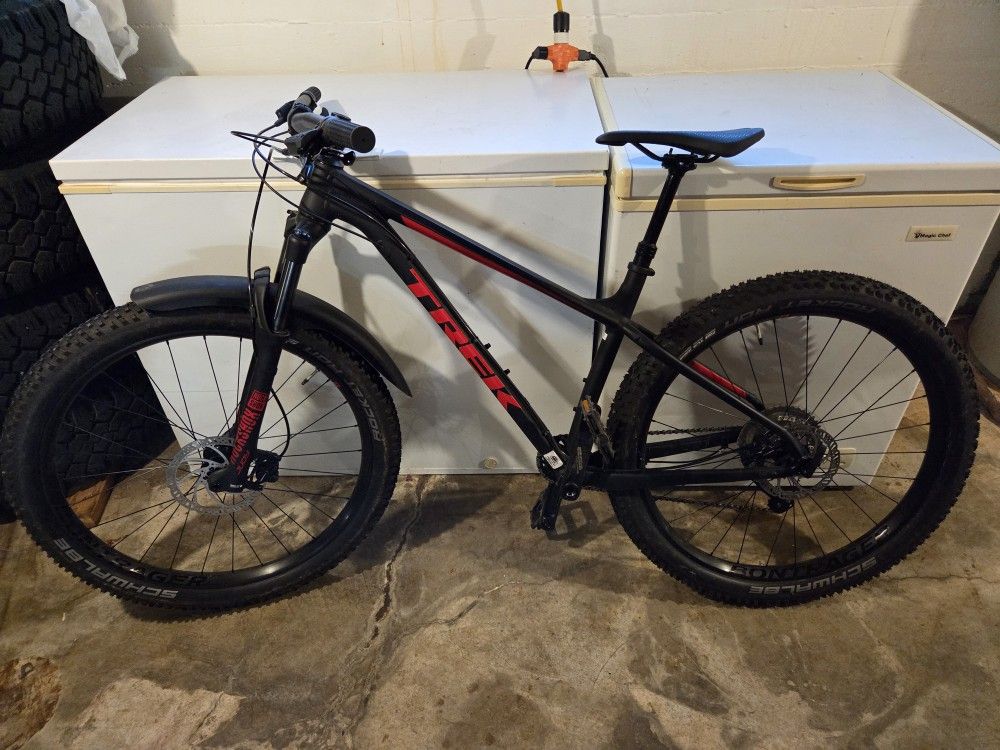Great entry level front suspension mountain bike, size 18.5. Only ridden a handful of times and still in great shape! Shimano Derore shifter, tektro brakes, rock shock front suspension and schwalbe tires. Always stored inside.