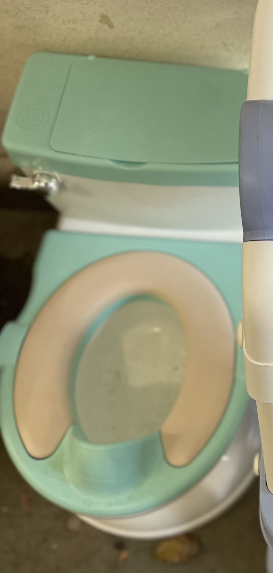 Cushioned seat, wipe holder, flusher makes real sound. :)
