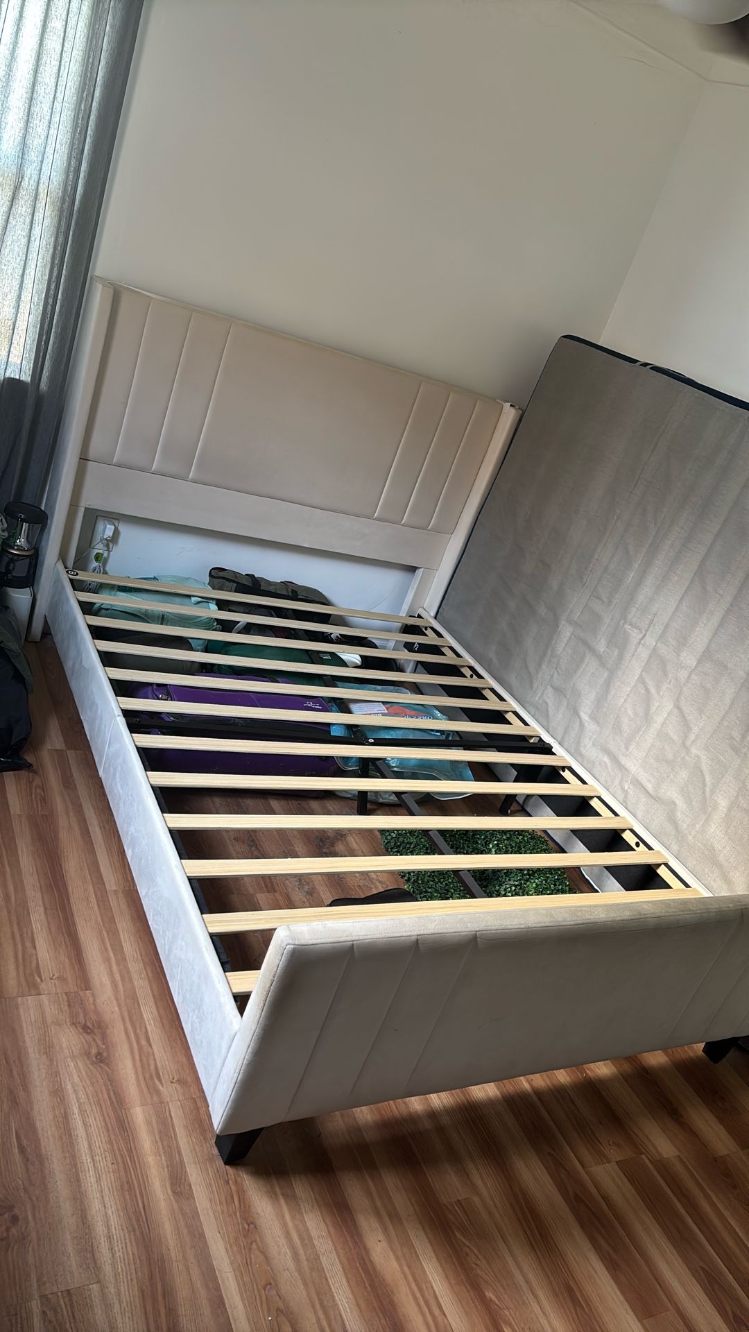 Queen size bed frame Cream color In good condition $20 OBO NEED TO GET RID OF TODAY WITHIN 2 HOURS