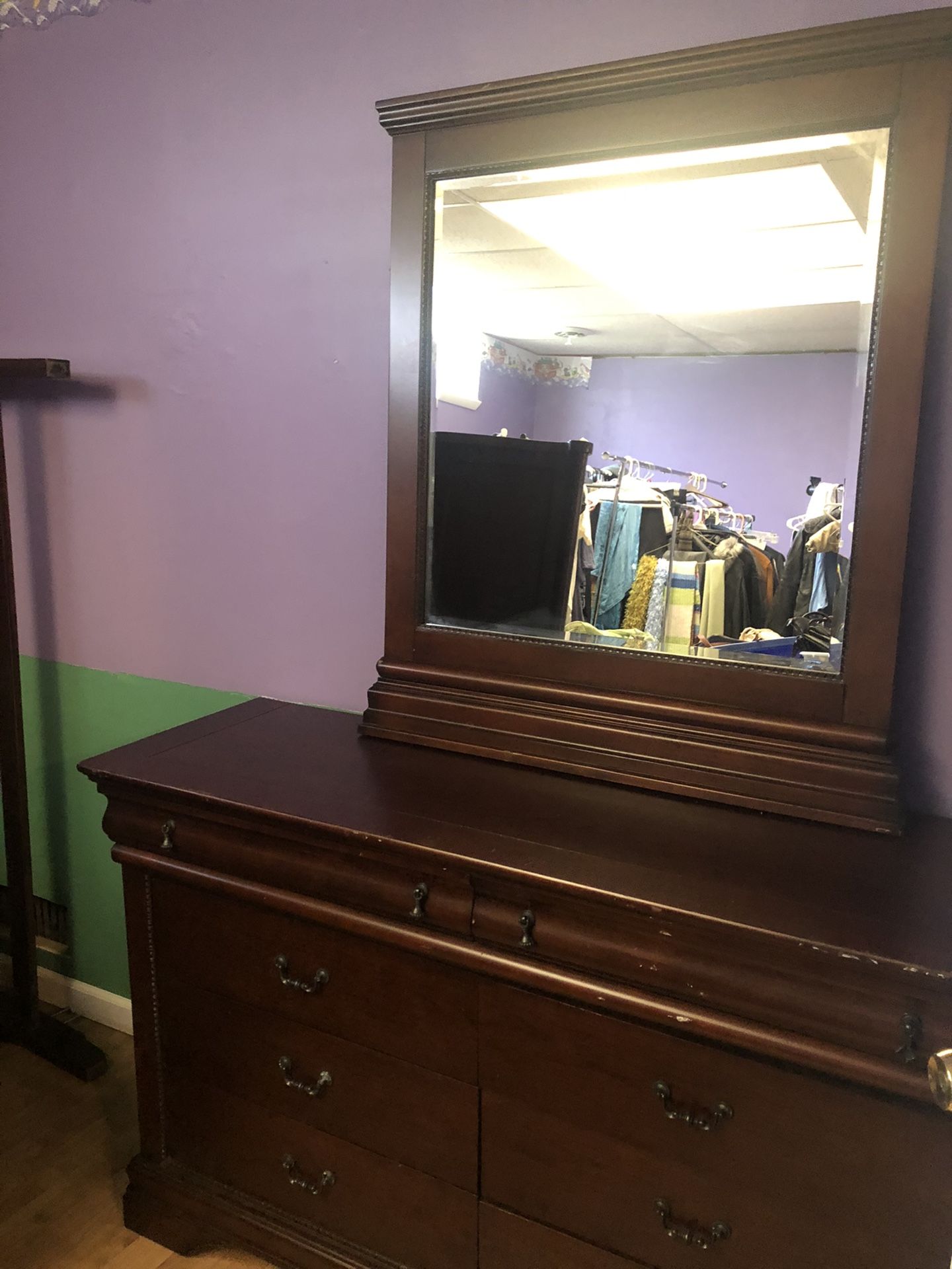 Queen Wood Bedroom Set Dresser/Mirror Chest 2 Night Stands Side Boards Railings