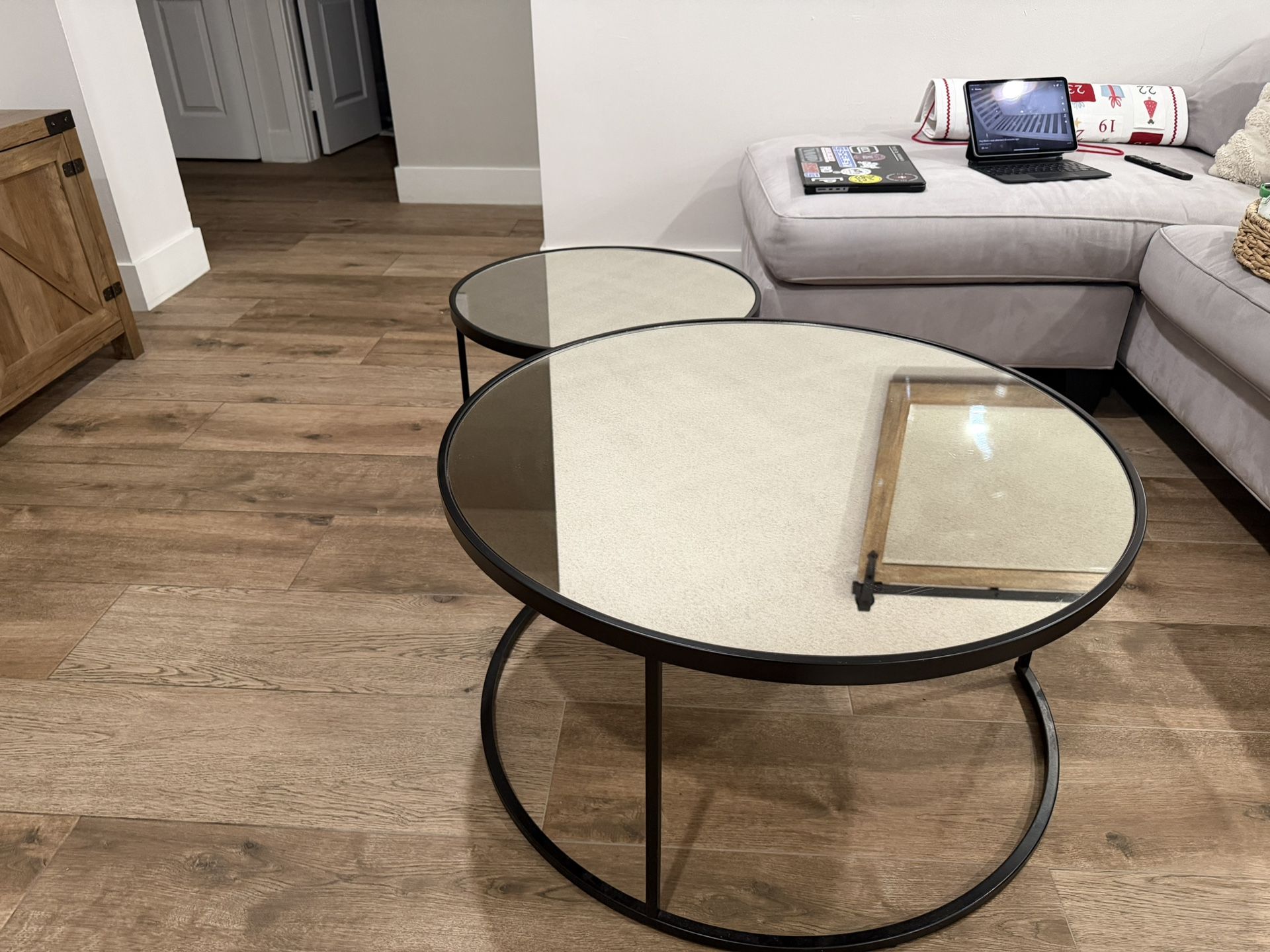 Like new condition round glass coffee table with smaller table under. Asking $100 OBO