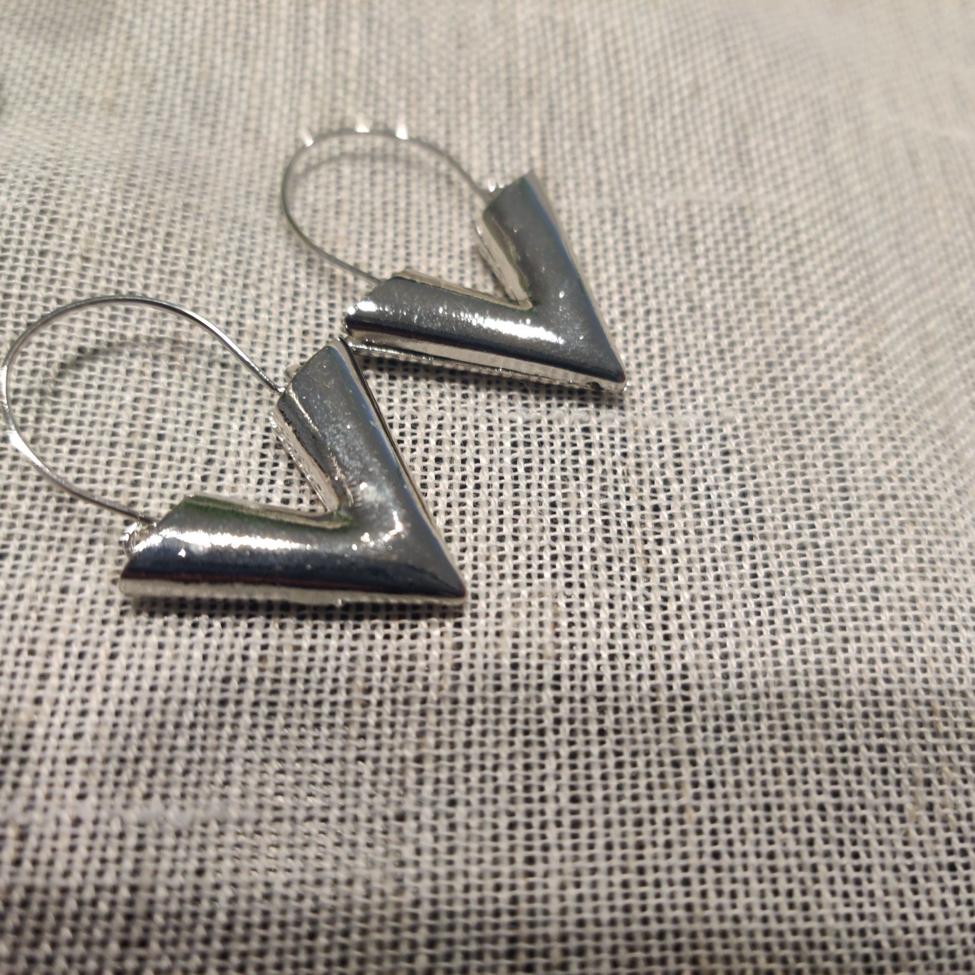 Earrings Brincos Oorbellen Simple Metal Wind Letter V Shape, Silver Color