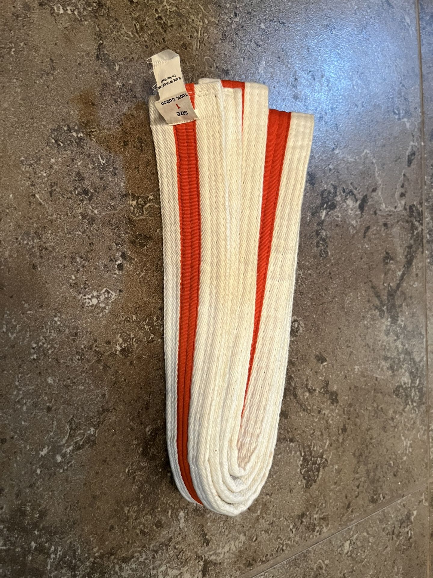 Martial Arts Belt, White with Orange Stripe, Size 1