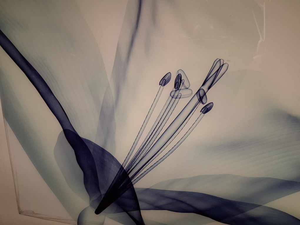 +4 This is an Empire Art Direct Amaryllis frameless free-floating tempered glass graphic wall art featuring a 3D x-ray illustration of an amaryllis flower. The artwork is printed on the back of clear, high-quality tempered glass, a technique inspired by Verre Eglomise. It features soft shades of sheer blue against a clean white backdrop, creating a modern aesthetic. The unique style allows a peek into the inner form of the flower, which might otherwise be hidden. The glass medium helps the artwork capture light effectively, enhancing its visual appeal. 31 in. X 47 in.