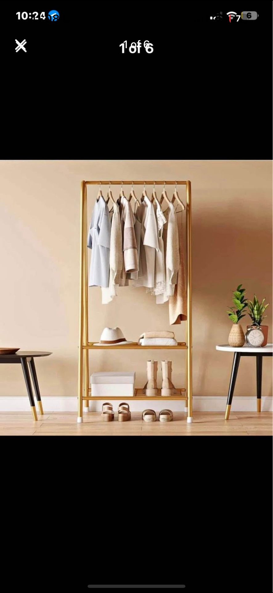 JOISCOPE Sturdy Metal Garment Rack with Double Shelves, Freestanding Portable Metal Clothes Rack for Hanging Clothes, 24.40" L x 13.80" W x 62.00" H Space Saving - Gold