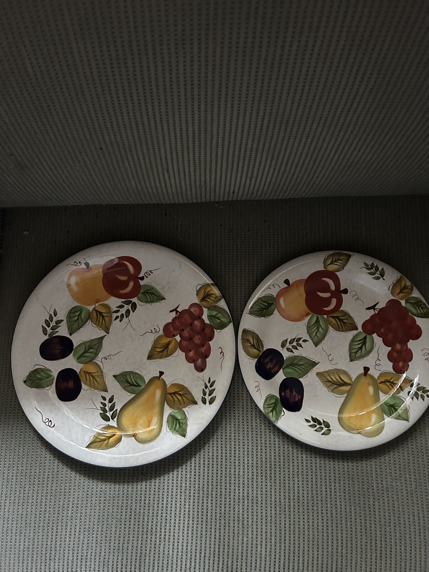 Large and smaller Oneida vintage fruit hand painted dinner plates. Large plate has very small chip. For both $24