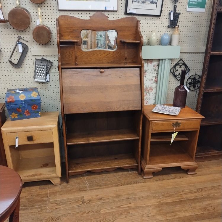 Lovely antique item. Just the right size. 30w12d62h when open 24"deep. Available at Antiques and Things booth 7 4710 Central SE open Tues -Sat 10 to 6 Sun 12-5