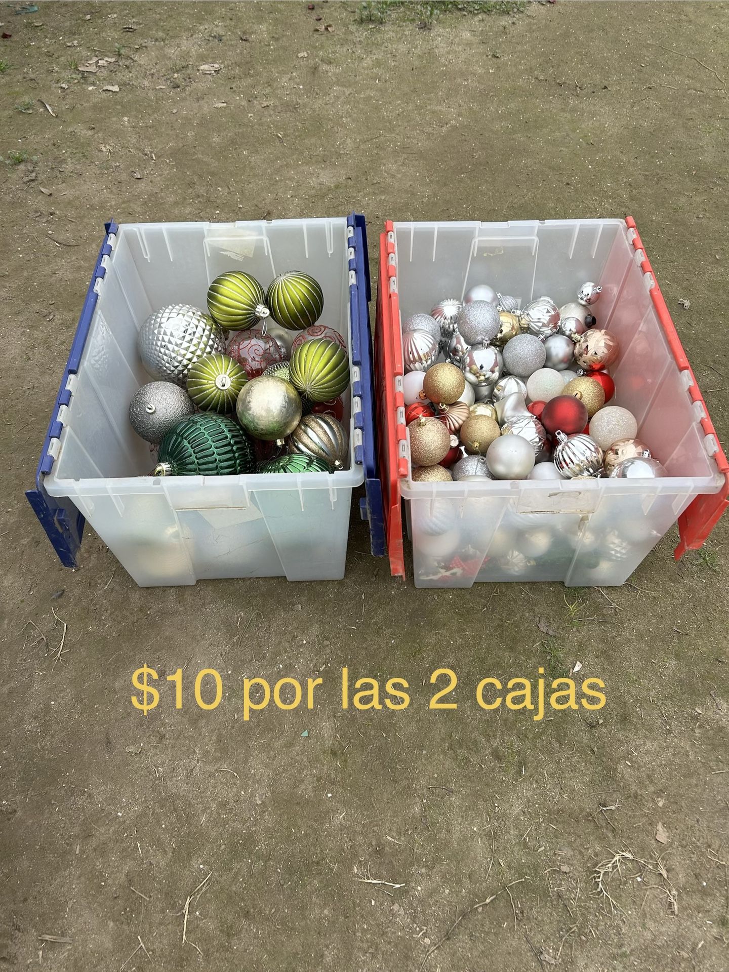 Esferas grandes y chicas, en buen estado, $10 por las dos cajas, es en tulare.