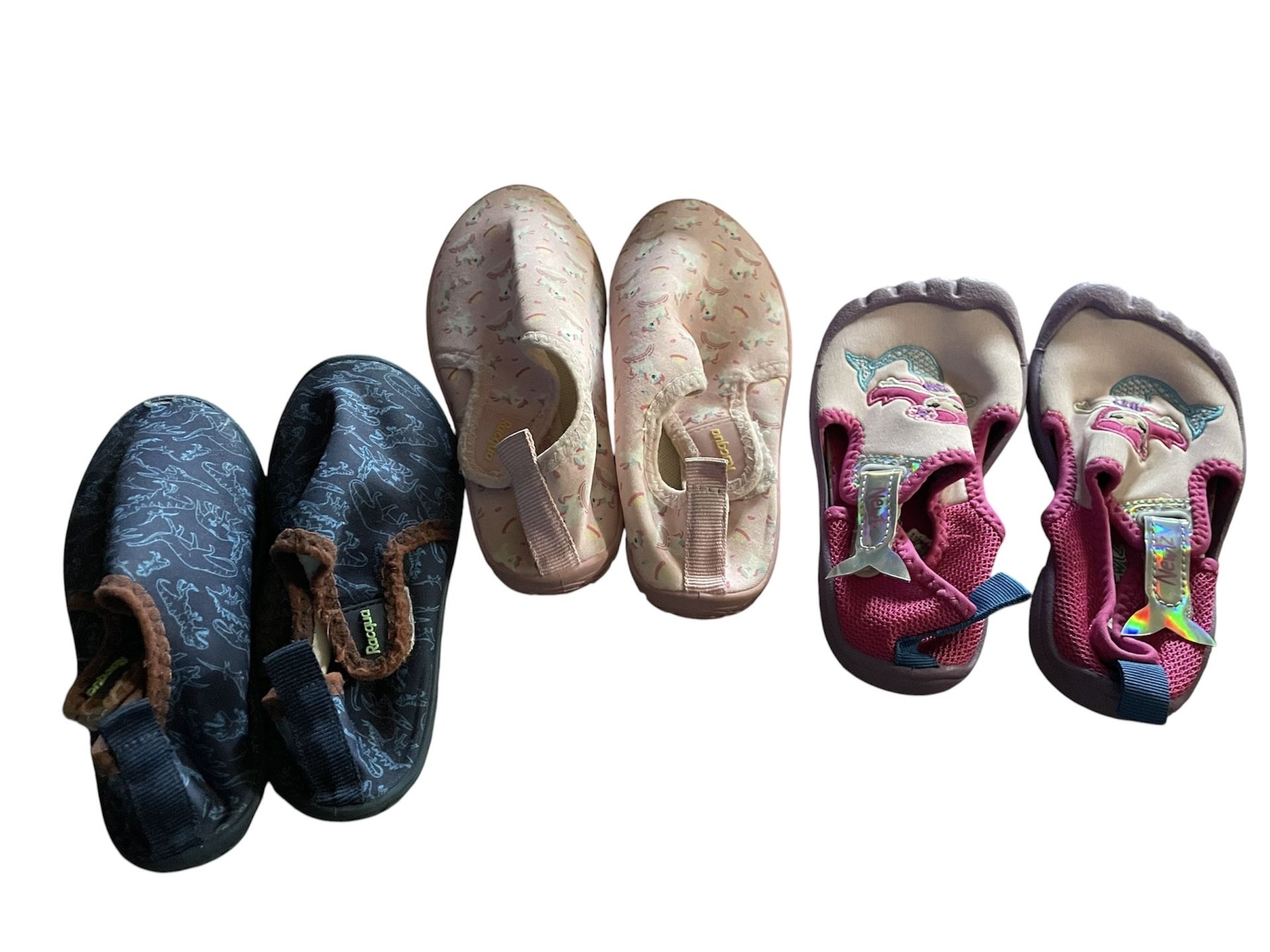 Kids warter shoes Get ready for summer Great value! Selling all three Blue color Racqua brand - no size label. Best guess for a five year old Pink Raquea brand - tag shows number 30. Pink mermaid USA size 9/10.