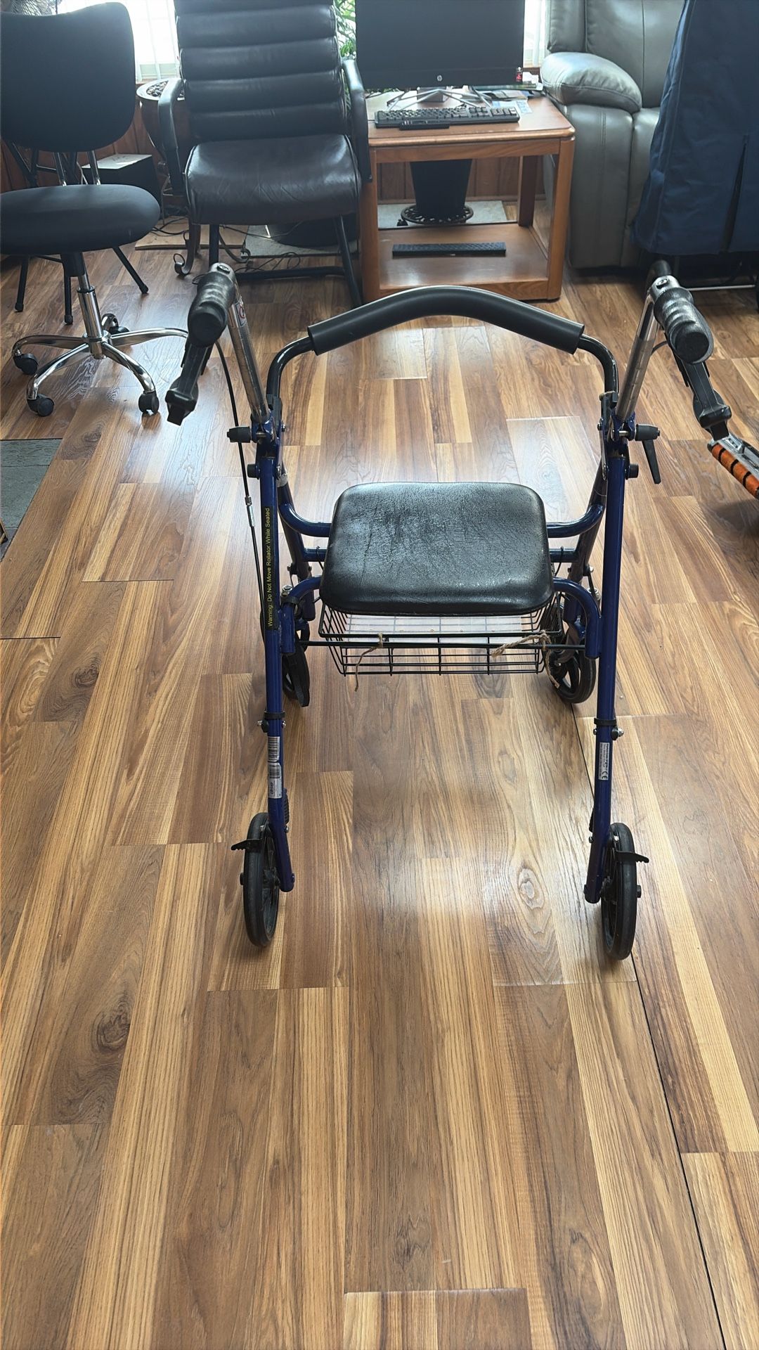 Four wheel walker for seniors. Walker with seat, hand brakes and Storage . Heavy Duty Frame . Support, 350 lbs.