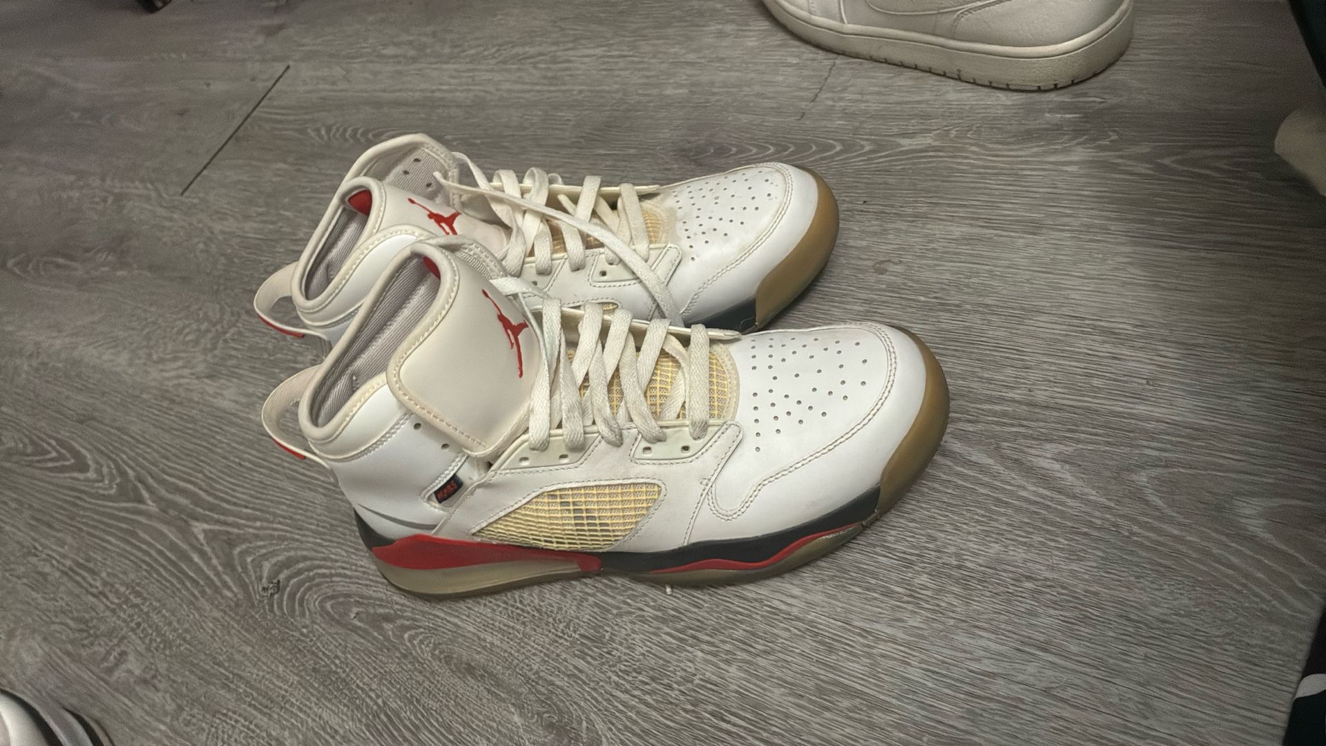 my older brother gave me these no box just shoes dont know nothing about these shoes there taken care of and no creases just dirty on the fromt of the toe no damages at all