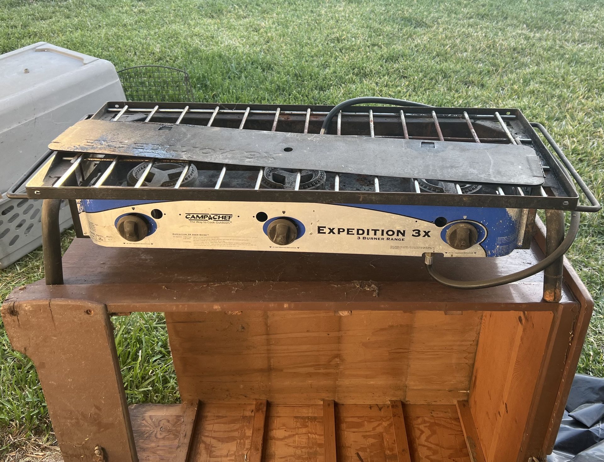 Camp chef expedition 3. Comes with legs and wind guard. Lights right up. Burns hot. $100 Solid. Perfect for camping, back yard or business. Summer’s coming. Be ready!!