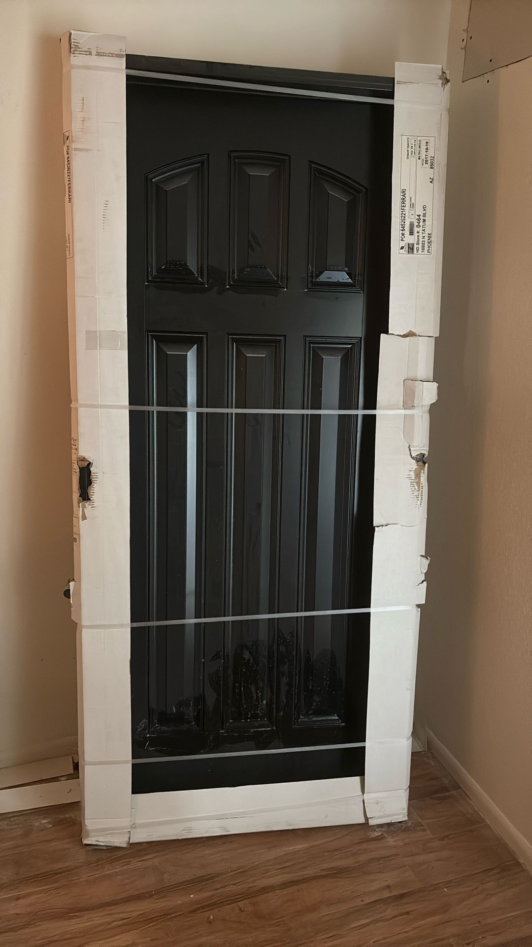 Left hand inswing , 5 1/4 inch jamb width. All black front and back, framing. Pictures show it is still in original packaging and a bit dusty but an impressive black door. These are usually $1200+, condo assn doesn’t want me to use it. $625.00 43 ave & Northern . Seems to be fiberglass or PVC