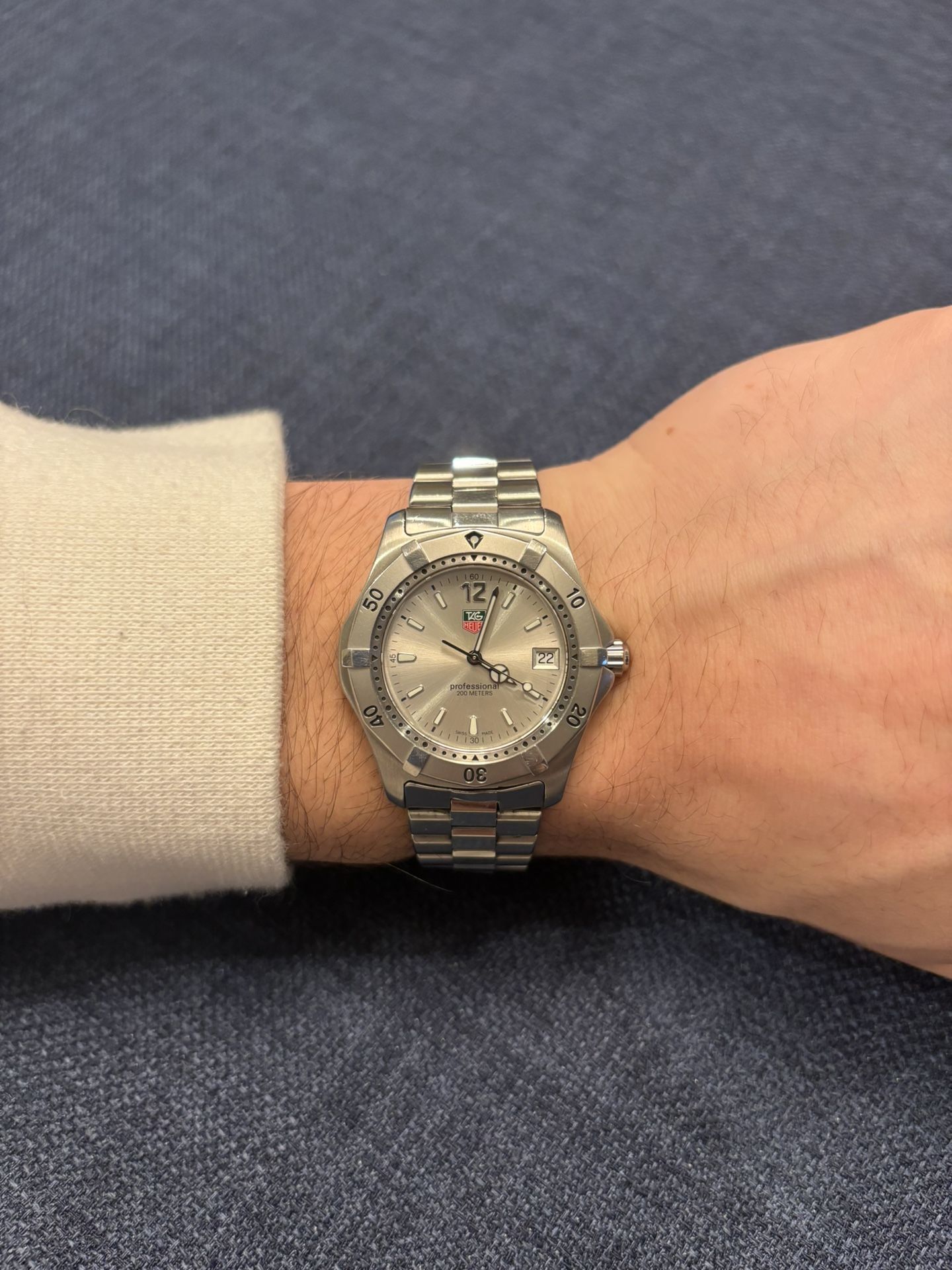 Tag Heuer 2000 professional diver 200m in mint condition. Case: 38mm diameter Material: Stainless steel Dial: Silver Bezel: Unidirectional Crystal: Sapphire Movement: Quartz Model: WK1112 Condition: Mint