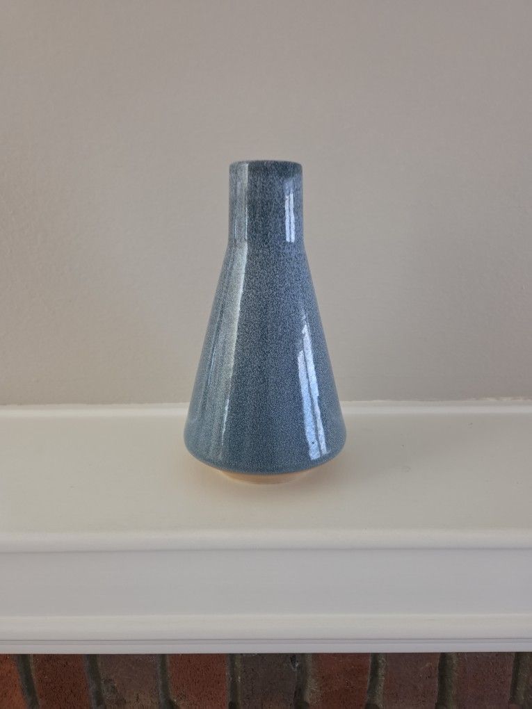 Threshold blue ceramic vase. Dusty blue. 10 inches in height.
