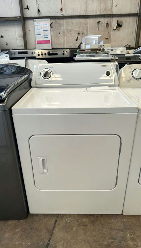 Dry your clothes fast and efficiently with this Whirlpool Basic Dryer featuring a heavy duty cycle and easy-to-clean lint filter. Designed to handle tough laundry loads, it’s ideal for families and anyone who wants quick, reliable drying. \n\nThere are some light scratches and general signs of use on the exterior, as expected with a pre-owned appliance. The control panel works great, and the drum is clean, but the rim has some rust and could use a little cleaning. \n\nComes with 60-day warranty \nSame day delivery available \nDM / Message us for more info \nHablamos español